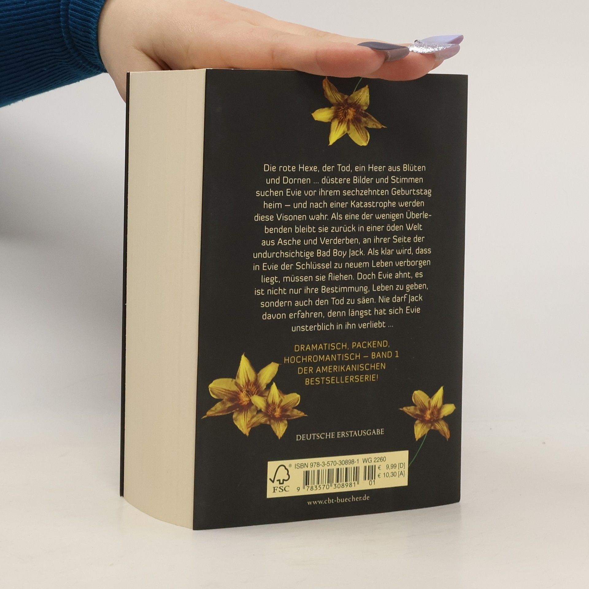 Die rote Hexe, der Tod, ein Heer aus Blüten und Dornen … düstere Bilder und Stimmen suchen Evie vor ihrem sechzehnten Geburtstag heim – und nach einer Katastrophe werden diese Visionen wahr. Als eine der wenigen Überlebenden bleibt sie zurück in einer öden Welt aus Asche und Verderben, an ihrer Seite der undurchsichtige Bad Boy Jack. Als klar wird, dass in Evie der Schlüssel zu neuem Leben verborgen liegt, müssen sie fliehen. Doch Evie ahnt, es ist nicht nur ihre Bestimmung, Leben zu geben, sondern auch den Tod zu säen. Nie darf Jack davon erfahren, denn längst hat sich Evie unsterblich in ihn verliebt …