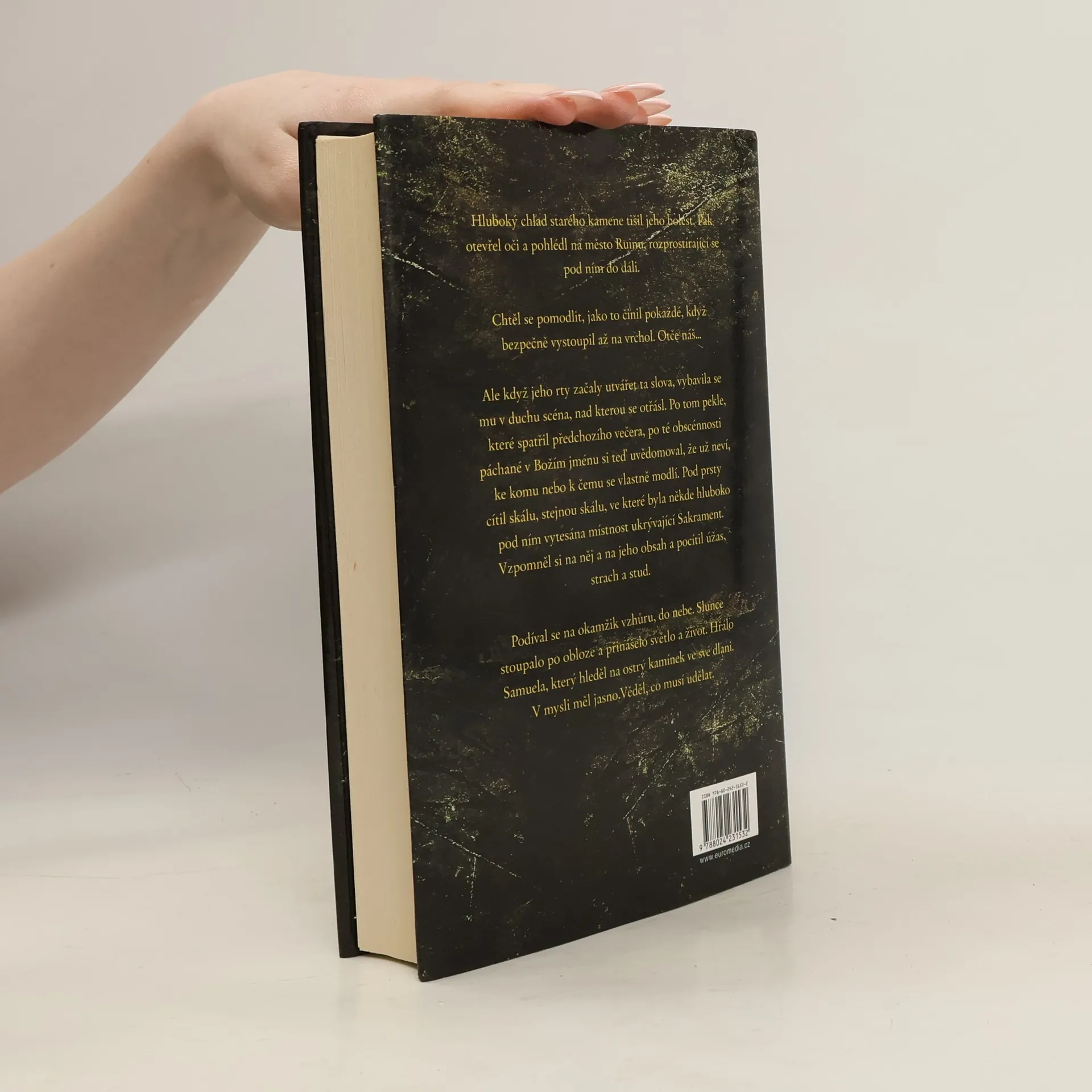 Mysteriózní thriller o hrůzyplném tajemství, které střeží podivný mnišský řád sídlící v tisíce let staré svatyni v nitru hory – a které je nyní blízko prozrazení. Celý svět totiž skrze televizní kamery přihlíží, jak neznámý mladý mnich vyšplhá na vrcholek citadely, stojí zde několik hodin s rozpaženýma rukama, a potom skočí. Na co chtěl svou smrtí upozornit? Proč se mniši snaží chránit své tajemství, svůj Sakrament, jakýmikoliv prostředky? A co je oním Sakramentem, který obyvatelům hory záhadně prodlužuje život? Odpověď sahá až do časů stvoření světa