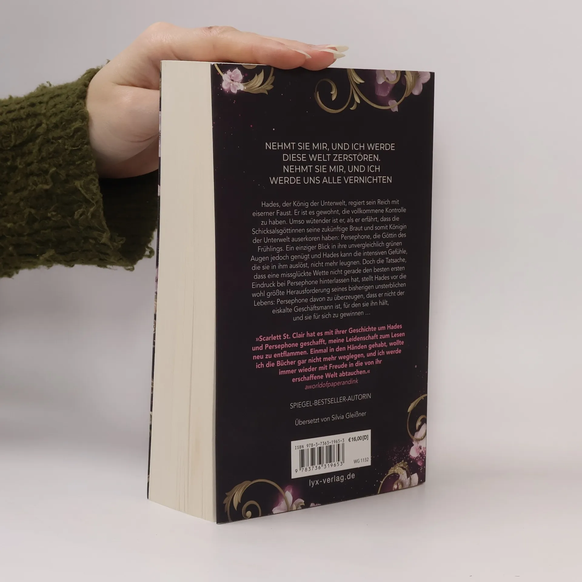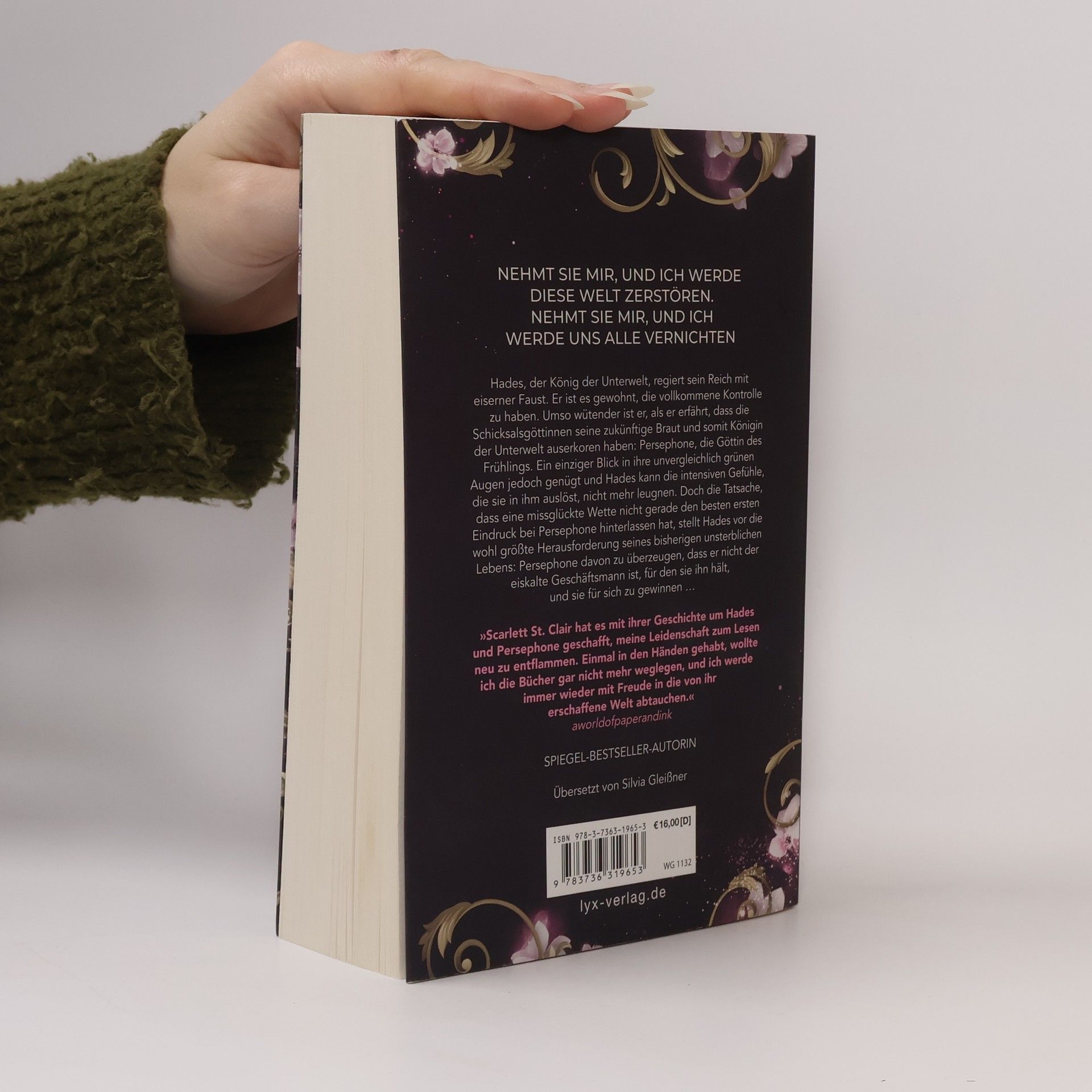 Nehmt sie mir, und ich werde diese Welt zerstören. Nehmt sie mir, und ich werde uns alle vernichten Hades, der König der Unterwelt, regiert sein Reich mit eiserner Faust. Er ist es gewohnt, die vollkommene Kontrolle zu haben. Umso wütender ist er, als er erfährt, dass die Schicksalsgöttinnen seine zukünftige Braut und somit Königin der Unterwelt auserkoren haben: Persephone, die Göttin des Frühlings. Ein einziger Blick in ihre unvergleichlich grünen Augen jedoch genügt und Hades kann die intensiven Gefühle, die sie in ihm auslöst, nicht mehr leugnen. Doch die Tatsache, dass eine missglückte Wette nicht gerade den besten ersten Eindruck bei Persephone hinterlassen hat, stellt Hades vor die wohl größte Herausforderung seines bisherigen unsterblichen Lebens: Persephone davon zu überzeugen, dass er nicht der eiskalte Geschäftsmann ist, für den sie ihn hält, und sie für sich zu gewinnen ... »Scarlett St. Clair hat es mit ihrer Geschichte um Hades und Persephone geschafft, meine Leidenschaft zum Lesen neu zu entflammen. Einmal in den Händen gehabt, wollte ich die Bücher gar nicht mehr weglegen, und ich werde immer wieder mit Freude in die von ihr erschaffene Welt abtauchen.« AWORLDOFPAPERANDINK Band 1 der HADES-SAGA von Bestseller-Autorin Scarlett St. Clair