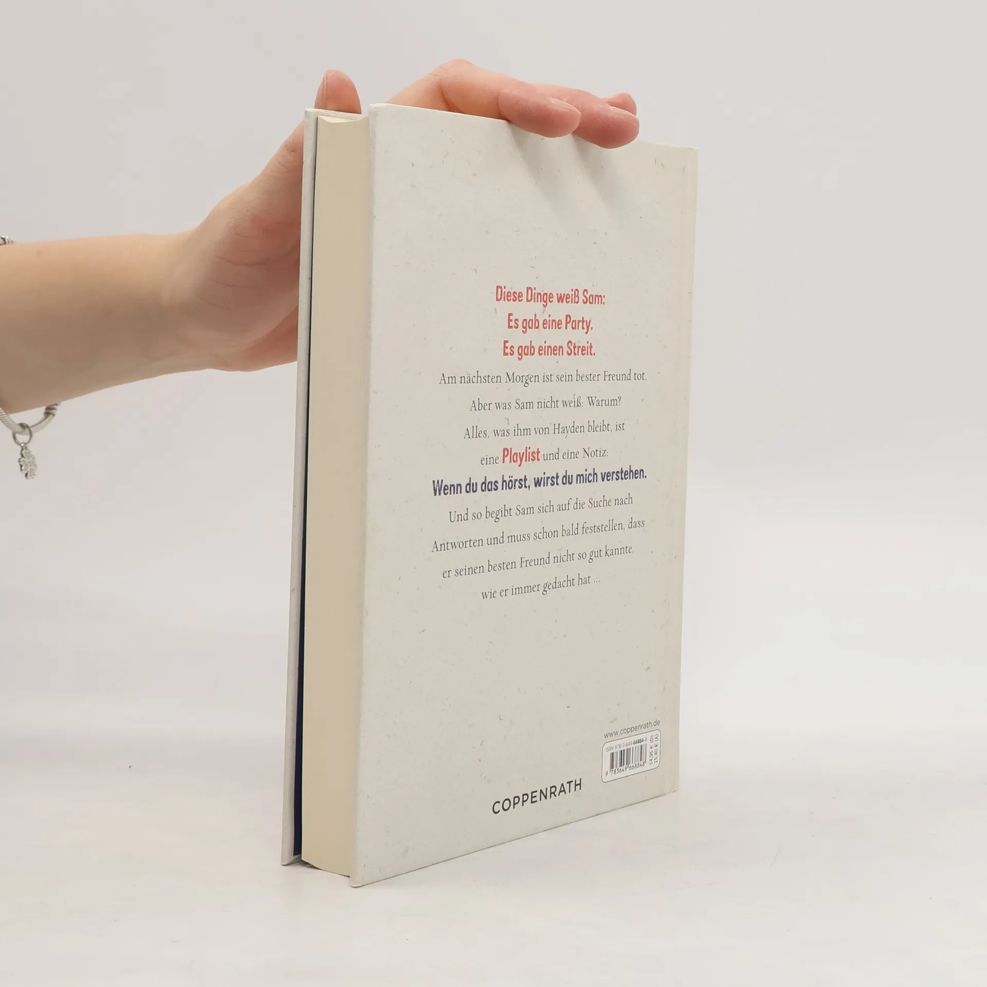 Diese Dinge weiß Sam: Es gab eine Party. Es gab einen Streit. Am nächsten Morgen ist sein bester Freund tot. Aber was Sam nicht weiß: Warum? Alles, was ihm von Hayden bleibt, ist eine Playlist und eine Notiz: Hör dir das an und du wirst mich verstehen. Und so begibt Sam sich auf die Suche nach Antworten und muss schon bald feststellen, dass er seinen besten Freund nicht so gut kannte, wie er immer gedacht hat.