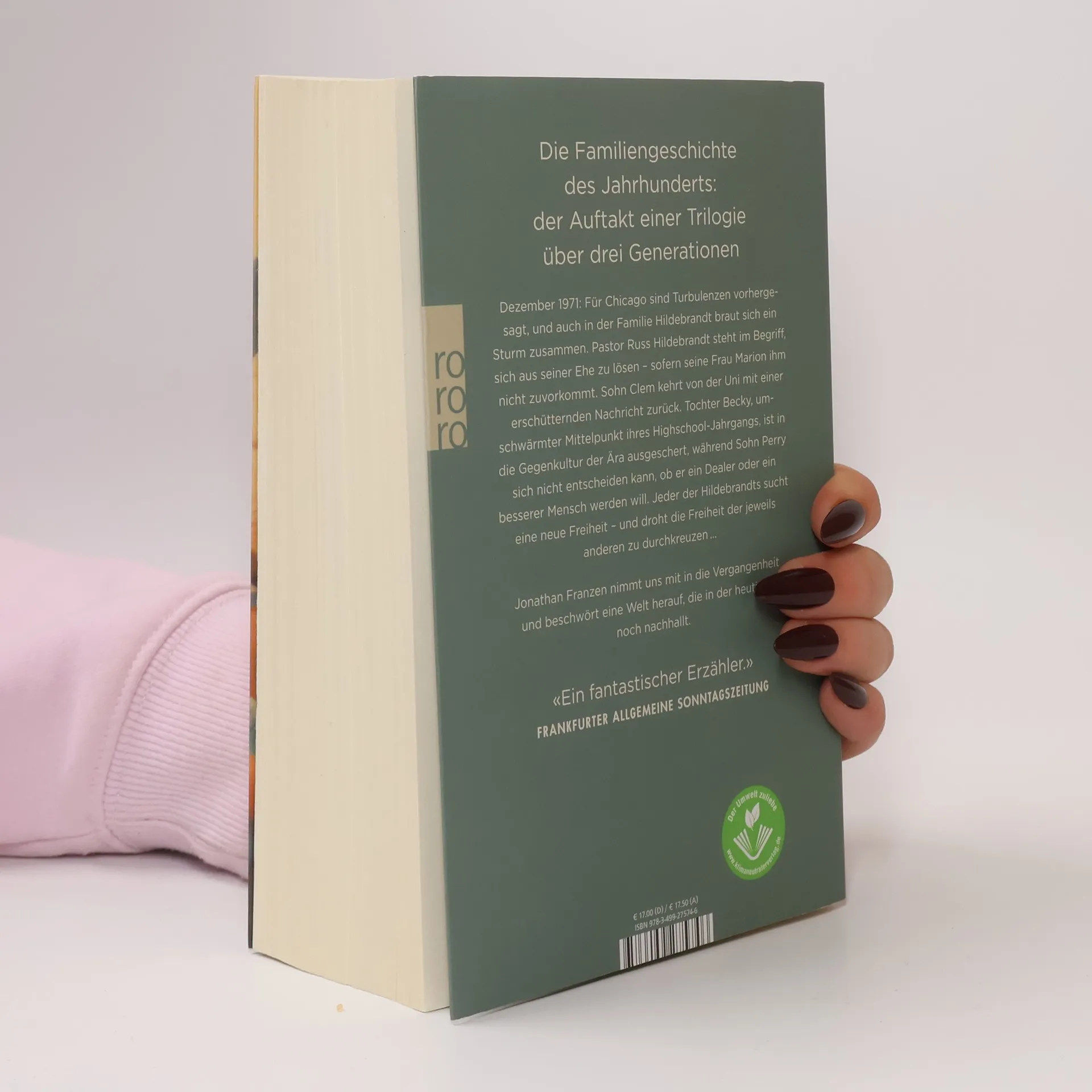 Die Familiengeschichte des Jahrhunderts. «Jonathan Franzen ist einer der größten lebenden Schriftsteller, und seine Romane gehören zum Kanon der großen amerikanischen Familien- und Sozialepen.» Der Spiegel Der Auftakt einer Trilogie über drei Generationen, in deren Mittelpunkt das Wesen der westlichen Kultur und eine Familie in all ihrer Komplexität steht. Ein Roman von beispielloser literarischer Kraft und psychologischer Tiefe, mal komisch, mal zutiefst bewegend und immer spannungsreich: ein fulminantes Werk über die politischen, religiösen und sozialen Mythologien unserer Zeit. 23. Dezember 1971: Familie Hildebrandt steht am Scheideweg. Russ, evangelischer Pastor einer Vorstadtgemeinde in Chicago, ist bereit, sich aus seiner Ehe zu lösen – vorausgesetzt, seine Frau löst sich zuerst. Ihr Sohn Clem kommt mit einer Nachricht nach Hause, die seinen Vater moralisch schwer erschüttert. Clems Schwester Becky, lange Zeit umschwärmtes Zentrum ihres Highschool-Jahrgangs, ist in die Gegenkultur der Ära ausgeschert, während ihr jüngerer Bruder Perry, ein dealender Kiffer, den festen Vorsatz hat, ein besserer Mensch zu werden. Jeder der Hildebrandts sucht eine Freiheit, der die anderen im Wege stehen.