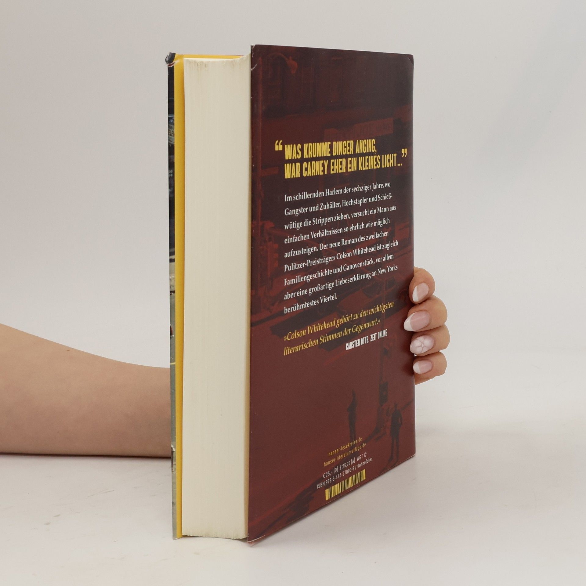 Harlem, 60er Jahre: die Geschichte eines einfachen Mannes, der so ehrlich wie möglich versucht aufzusteigen. Der neue Roman des zweifachen Pulitzerpreisträgers und Bestsellerautors Colson Whitehead Eigentlich würde Ray Carney am liebsten ohne Betrügereien auskommen, doch die Einkünfte aus seinem Laden reichen nicht aus für den Standard, den die Schwiegereltern erwarten. Cousin Freddy bringt gelegentlich eine Goldkette vorbei, die Ray bei einem Juwelier versetzt. Doch was tun mit dem Raubgut aus dem Coup im legendären „Hotel Theresa“ im Herzen Harlems, nachdem Freddy sich verdünnisiert hat? Als Polizei und Gangster Ray in seinem Laden aufsuchen, steht sein waghalsiges Doppelleben auf der Kippe. Der mitreißende Roman des zweifachen Pulitzer-Preisträgers Colson Whitehead ist Familiensaga, Soziographie und Ganovenstück, vor allem aber eine Liebeserklärung an New Yorks berühmtestes Viertel.