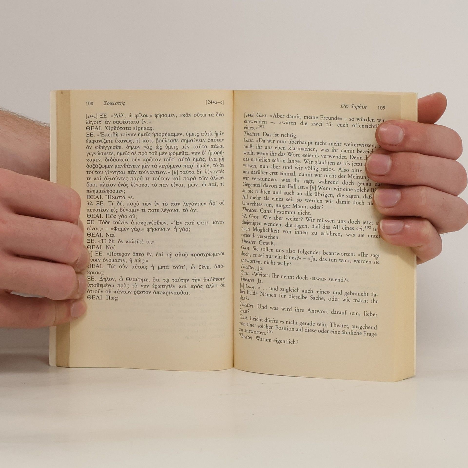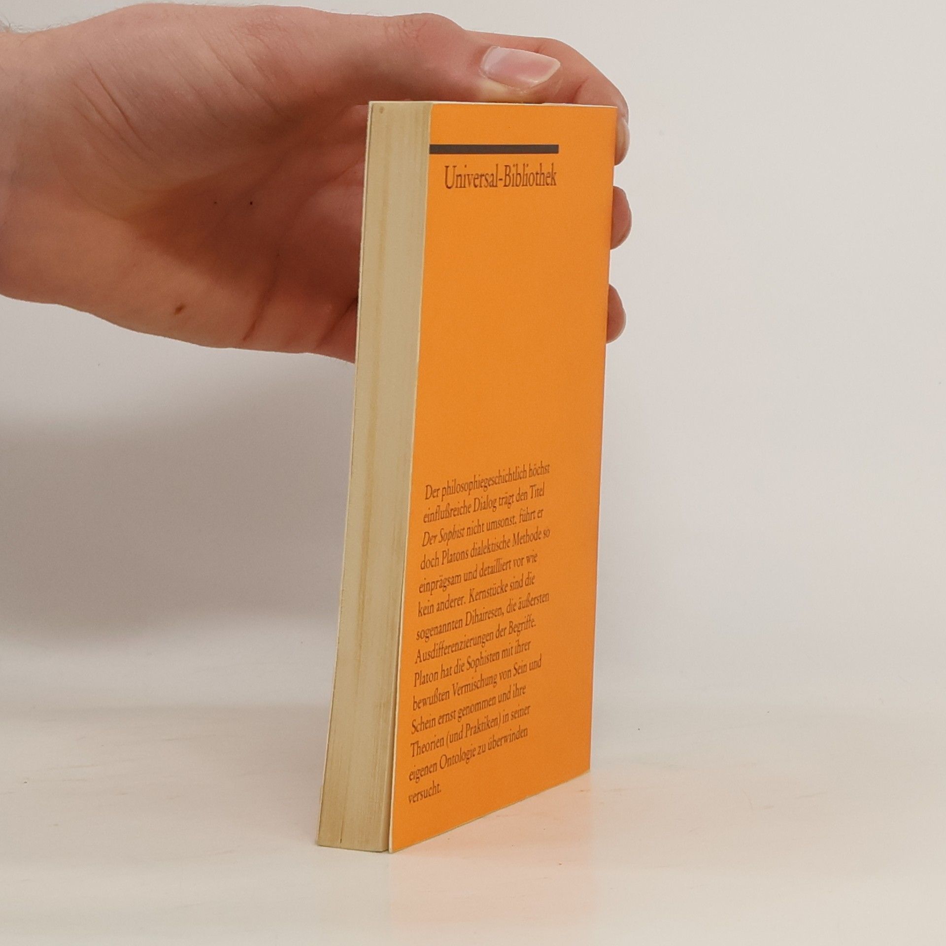 Platon: Der Sophist Entstanden etwa nach 365 v. Chr. Erstdruck (in lateinischer Ubersetzung durch Marsilio Ficino) in: Opere, Florenz o. J. (ca. 1482/84). Erstdruck des griechischen Originals in: Hapanta ta tu Platonos, herausgegeben von M. Musoros, Venedig 1513. Erste deutsche Ubersetzung durch Johann Friedrich Kleuker in: Werke, 4. Band, Lemgo 1786. Der Text folgt der Ubersetzung durch Friedrich Daniel Ernst Schleiermacher von 1807. Vollstandige Neuausgabe mit einer Biographie des Autors. Herausgegeben von Karl-Maria Guth. Berlin 2016, 2. Auflage. Textgrundlage ist die Ausgabe: Platon: Samtliche Werke. Berlin: Lambert Schneider, [1940]. Die Paginierung obiger Ausgabe wird in dieser Neuausgabe als Marginalie zeilengenau mitgefuhrt. Umschlaggestaltung von Thomas Schultz-Overhage unter Verwendung des Bildes: Raffael, Die Schule von Athen (Detail). Gesetzt aus der Minion Pro, 11 pt."