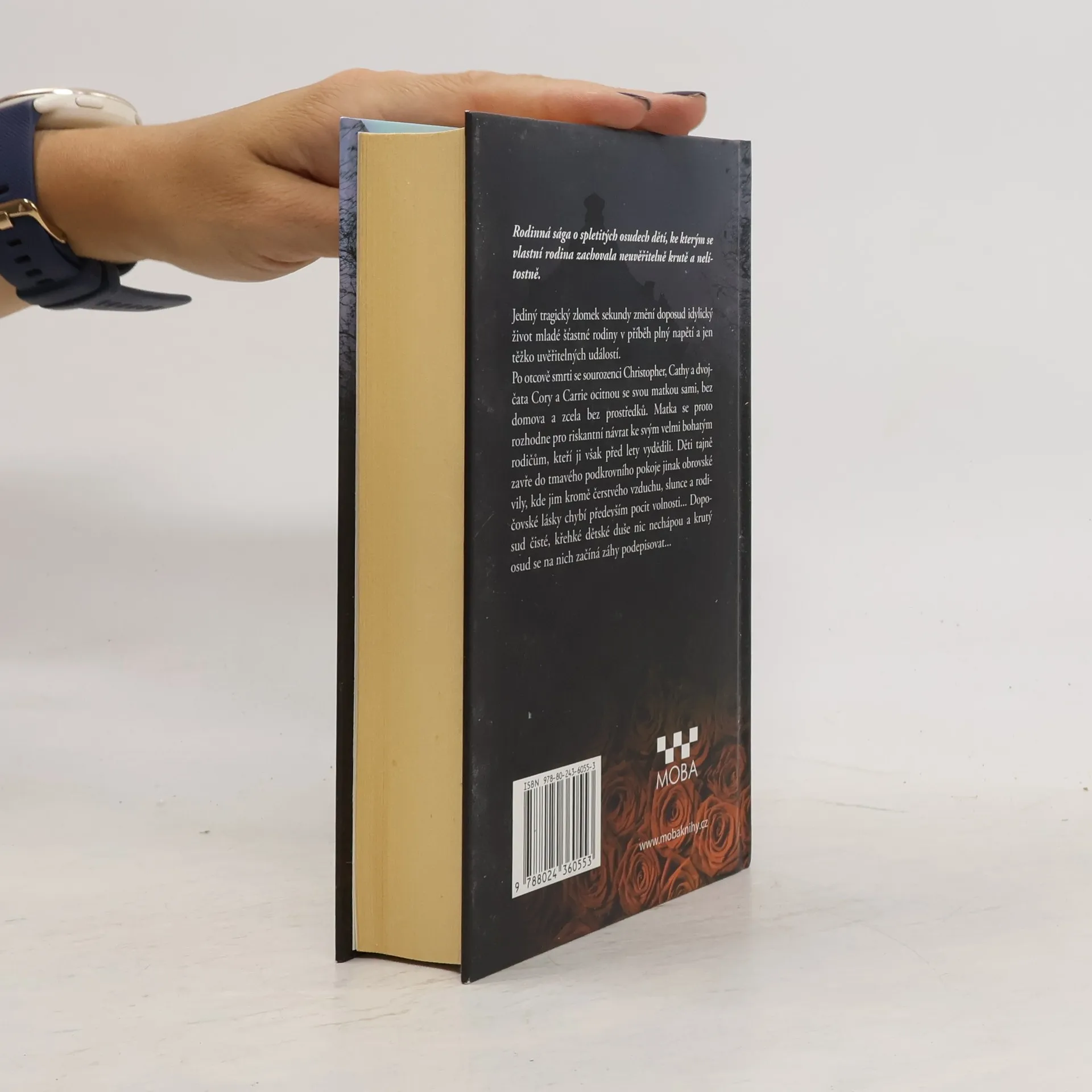 Jediný tragický moment na dálnici mění doposud idylický život mladé šťastné rodiny v absurdní příběh. Po otcově smrti zůstávají sourozenci Christopher, Cathy a dvojčata Cory a Carrie se svou matkou sami a hlavně bez prostředků, a tak se Corinna rozhodne pro riskantní návrat k velmi bohatým rodičům, kteří ji však před lety vydědili. Děti zavře do podkrovního pokoje, kde jim vlastně nic neschází, nic kromě čerstvého vzduchu, živých květin a pocitu volnosti. Na půdě, kam je přístup jen z onoho pokoje si vybudují papírovou zahradu... 3. vydání, v nakl. MOBA vydání 1.