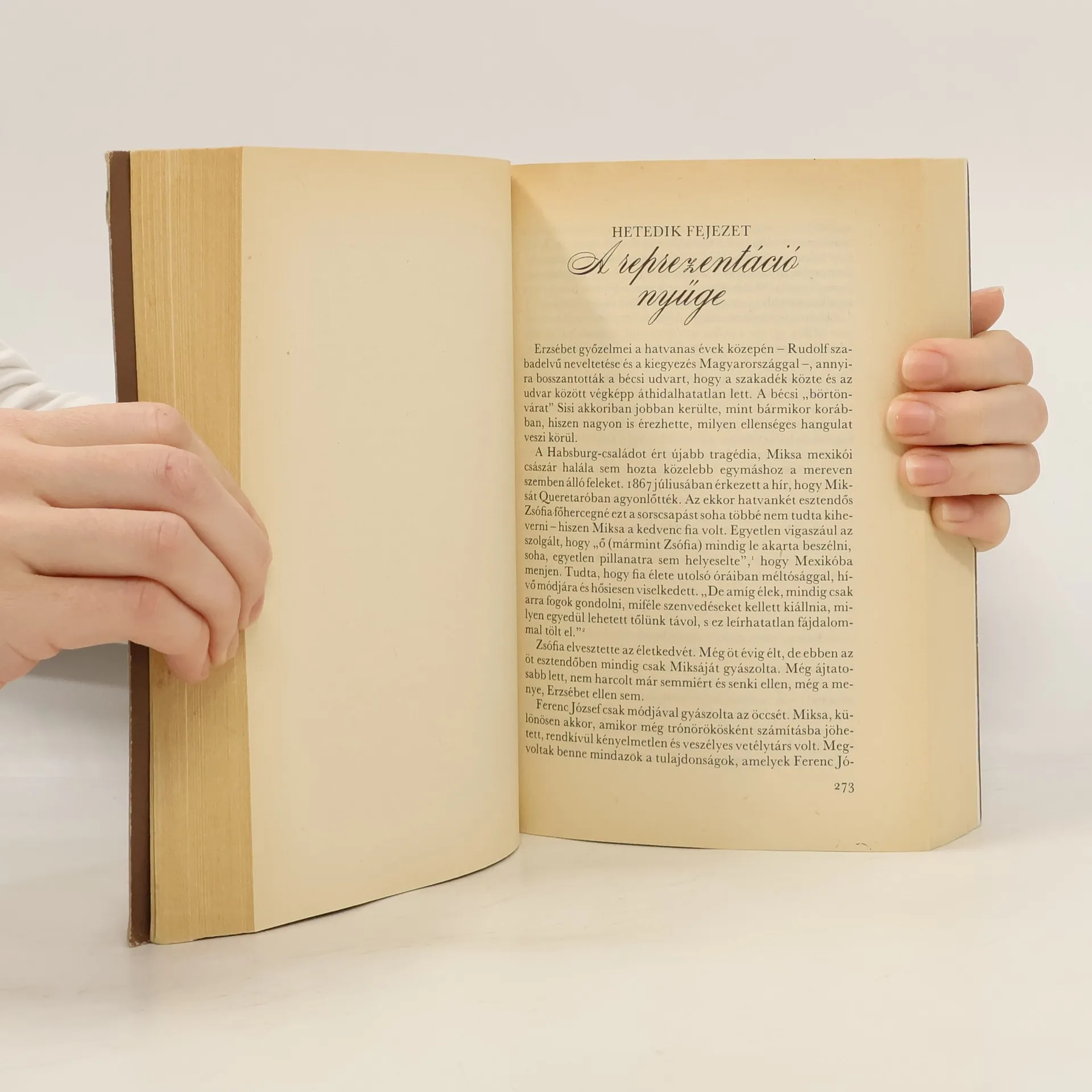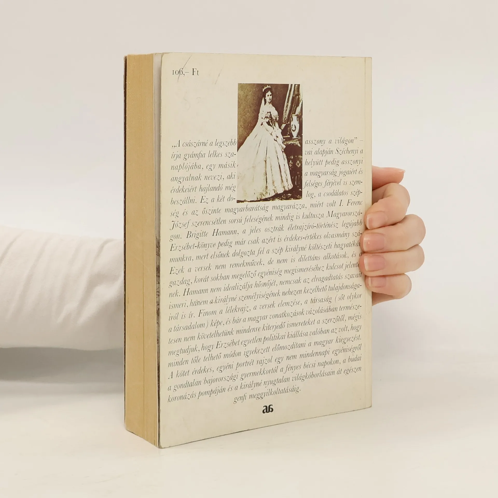 „A császárné a legszebb asszony a világon” – írja gyámfia lelkes szavai alapján Széchenyi a naplójába, egy másik helyen pedig asszonyi angyalnak nevezi, aki a magyarság érdekeiért még felséges férjével is hajlandó szembeszállni. Ez a két dolog, a csodálatos szépség és az őszinte magyarbarátság magyarázza, miért volt I. Ferenc József szomorú sorsú feleségének mindig is kultusza Magyarországon. Brigitte Hamann, a jeles osztrák történész nem mindennapi feladatra vállalkozott, amikor e legendák övezte királyné életsorsának hiteles bemutatását tűzte ki céljául. Hamann nem idealizálja hősnőjét, nem csak az elragadtatás szavait ismeri, nem próbálja meg leplezni Erzsébet nehezen kezelhető tulajdonságait sem. Könyvéből megismerhetjük ezt az egész életében szabadságvágytól fűtött, az udvari etikett börtönében inkább csak vergődő asszonyt, hatalmas képzeletvilágáról árulkodó költészetét, tudásszomját, s egyszersmind képet kapunk a XIX. század második felének társasági (és társadalmi) életéről, szépségápolási és gyermeknevelési praktikáiról, politikai mozgalmairól, a Monarchia boldog békeéveiről, valamint Erzsébetnek a magyar kiegyezésben játszott valóban jelentős szerepéről. A kötet érdekes portrét rajzol egy nem mindennapi egyéniségről a gondtalan bajorországi gyermekkortól a fényes bécsi napokon, a budai koronázás pompáján és a királyné nyugtalan világkóborlásain át egészen meggyilkolásáig.