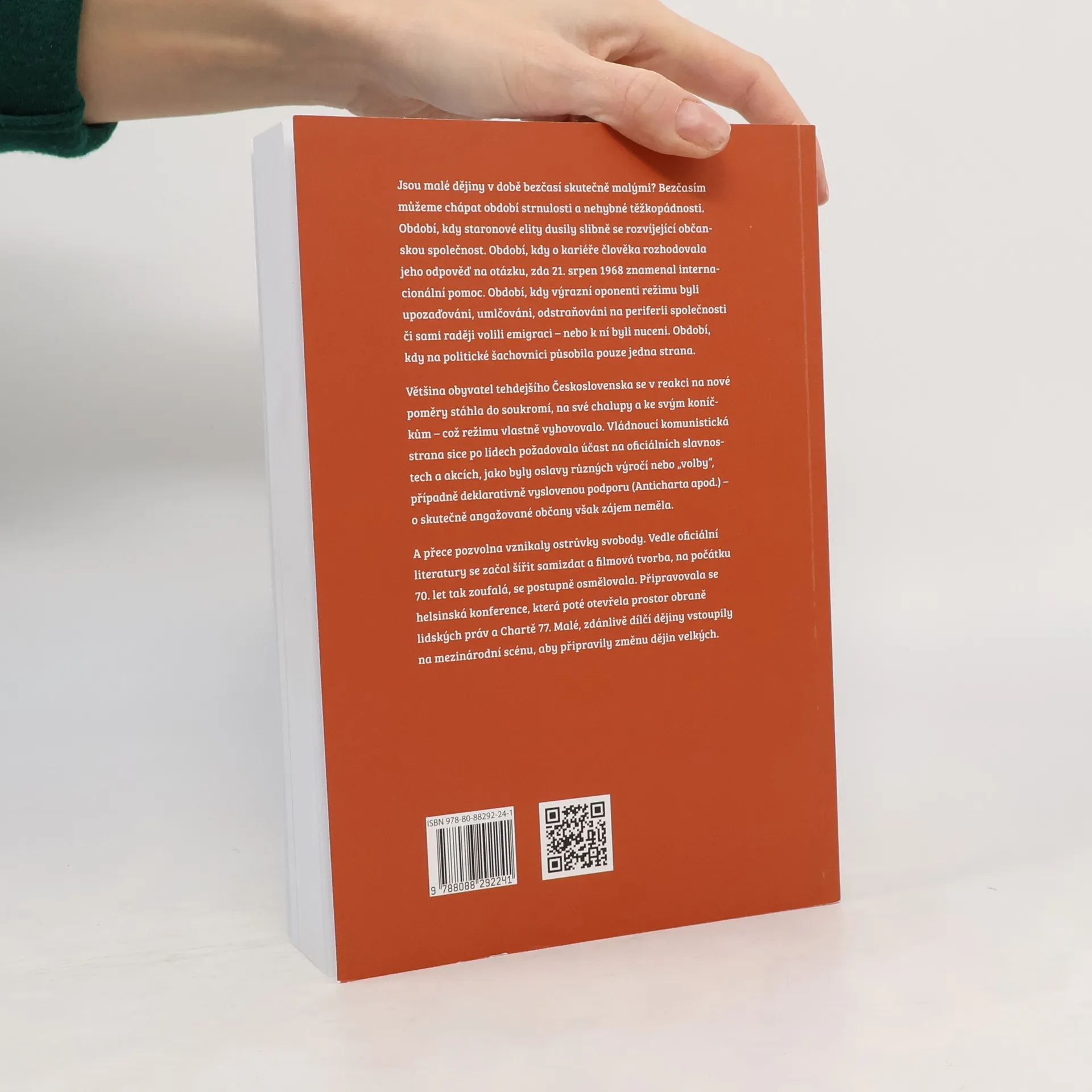sou malé dějiny v době bezčasí skutečně malými? Bezčasím můžeme chápat období strnulosti a nehybné těžkopádnosti. Období, kdy staronové elity dusily slibně se rozvíjející občanskou společnost. Období, kdy o kariéře člověka rozhodovala jeho odpověď na otázku, zda 21. srpen 1968 znamenal internacionální pomoc. Období, kdy výrazní oponenti režimu byli upozaďováni, umlčováni, odstraňováni na periferii společnosti či sami raději volili emigraci – nebo k ní byli nuceni. Období, kdy na politické šachovnici působila pouze jedna strana. Většina obyvatel tehdejšího Československa se v reakci na nové poměry stáhla do soukromí, na své chalupy a ke svým koníčkům – což režimu vlastně vyhovovalo. Vládnoucí komunistická strana sice po lidech požadovala účast na oficiálních slavnostech a akcích, jako byly oslavy různých výročí nebo „volby“, případně deklarativně vyslovenou podporu (Anticharta apod.) – o skutečně angažované občany však zájem neměla. A přece pozvolna vznikaly ostrůvky svobody. Vedle oficiální literatury se začal šířit samizdat a filmová tvorba, na počátku 70. let tak zoufalá, se postupně osmělovala. Připravovala se helsinská konference, která poté otevřela prostor obraně lidských práv a Chartě 77. Malé, zdánlivě dílčí dějiny vstoupily na mezinárodní scénu, aby připravily změnu dějin velkých.