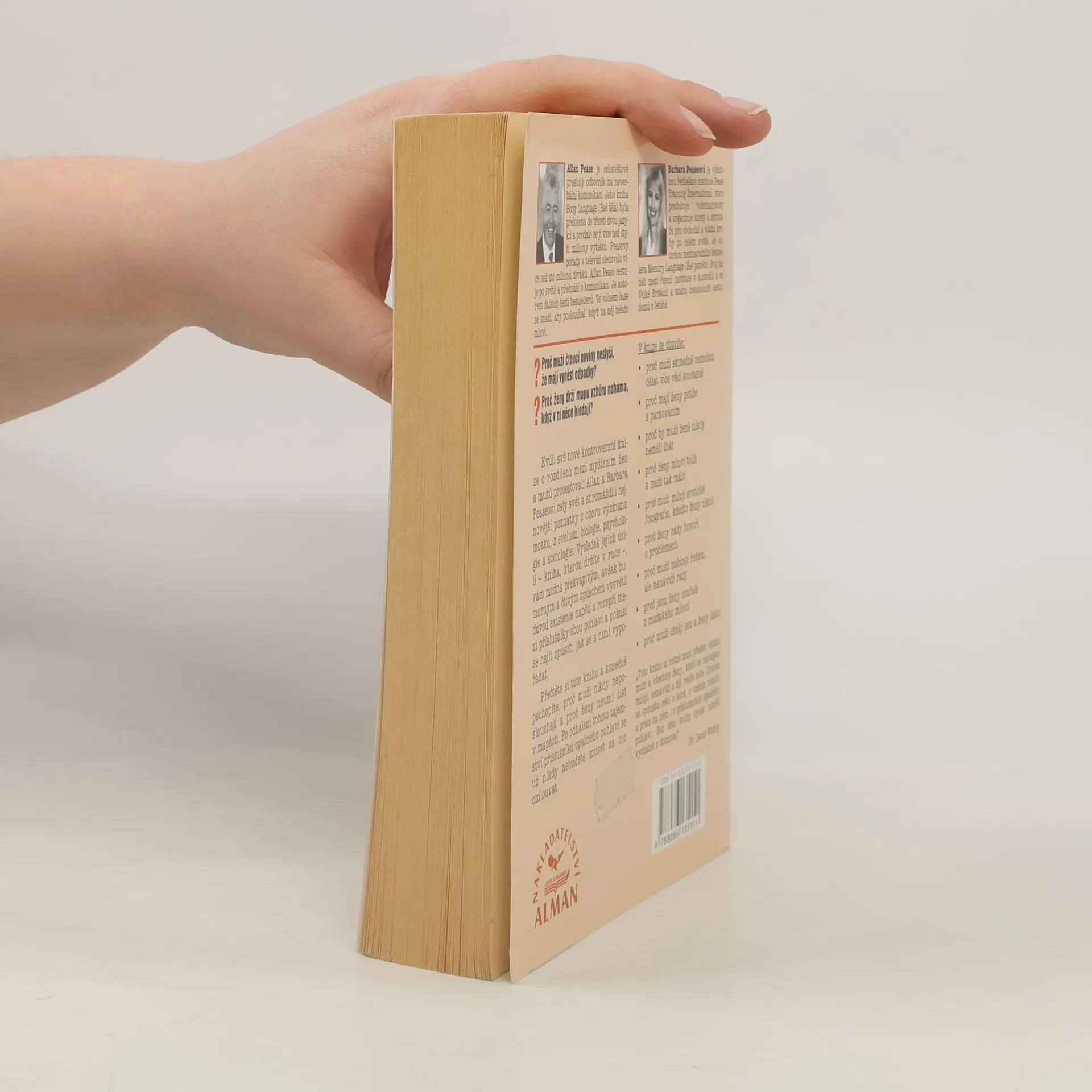 Kvůli své kontroverzní knize o rozdílech mezi myšlením žen a mužů procestovali Allan a Barbara Peaseovi celý svět a shromáždili nejnovější poznatky z oboru výzkumu mozku, z evoluční biologie, psychologie a sociologie. Výsledek jejich úsilí, vám možná překvapivým, avšak humorným a čtivým způsobem vysvětlí důvod existence napětí rozepří mezi příslušníky obou pohlaví a pokusí se najít způsob, jak se s nimi vypořádat. Přečtěte si tuto knihu a konečně pochopíte, proč muži nikdy neposlouchají a proč ženy neumí číst v mapách. Po odhalení tohoto tajemství příslušníků opačného pohlaví se už nikdy nebudete muset za nic omlouvat.