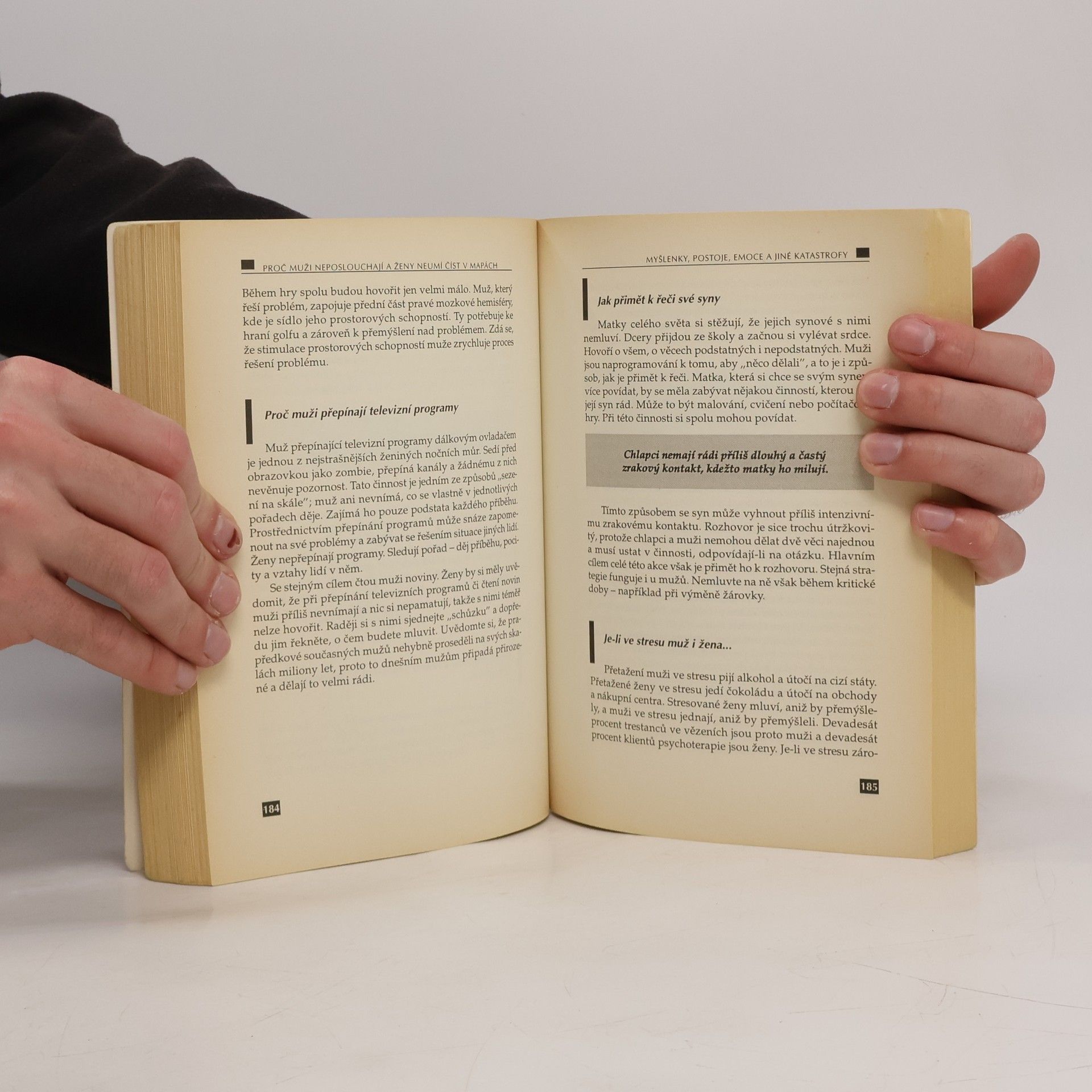 Kvůli své kontroverzní knize o rozdílech mezi myšlením žen a mužů procestovali Allan a Barbara Peaseovi celý svět a shromáždili nejnovější poznatky z oboru výzkumu mozku, z evoluční biologie, psychologie a sociologie. Výsledek jejich úsilí, vám možná překvapivým, avšak humorným a čtivým způsobem vysvětlí důvod existence napětí rozepří mezi příslušníky obou pohlaví a pokusí se najít způsob, jak se s nimi vypořádat. Přečtěte si tuto knihu a konečně pochopíte, proč muži nikdy neposlouchají a proč ženy neumí číst v mapách. Po odhalení tohoto tajemství příslušníků opačného pohlaví se už nikdy nebudete muset za nic omlouvat.