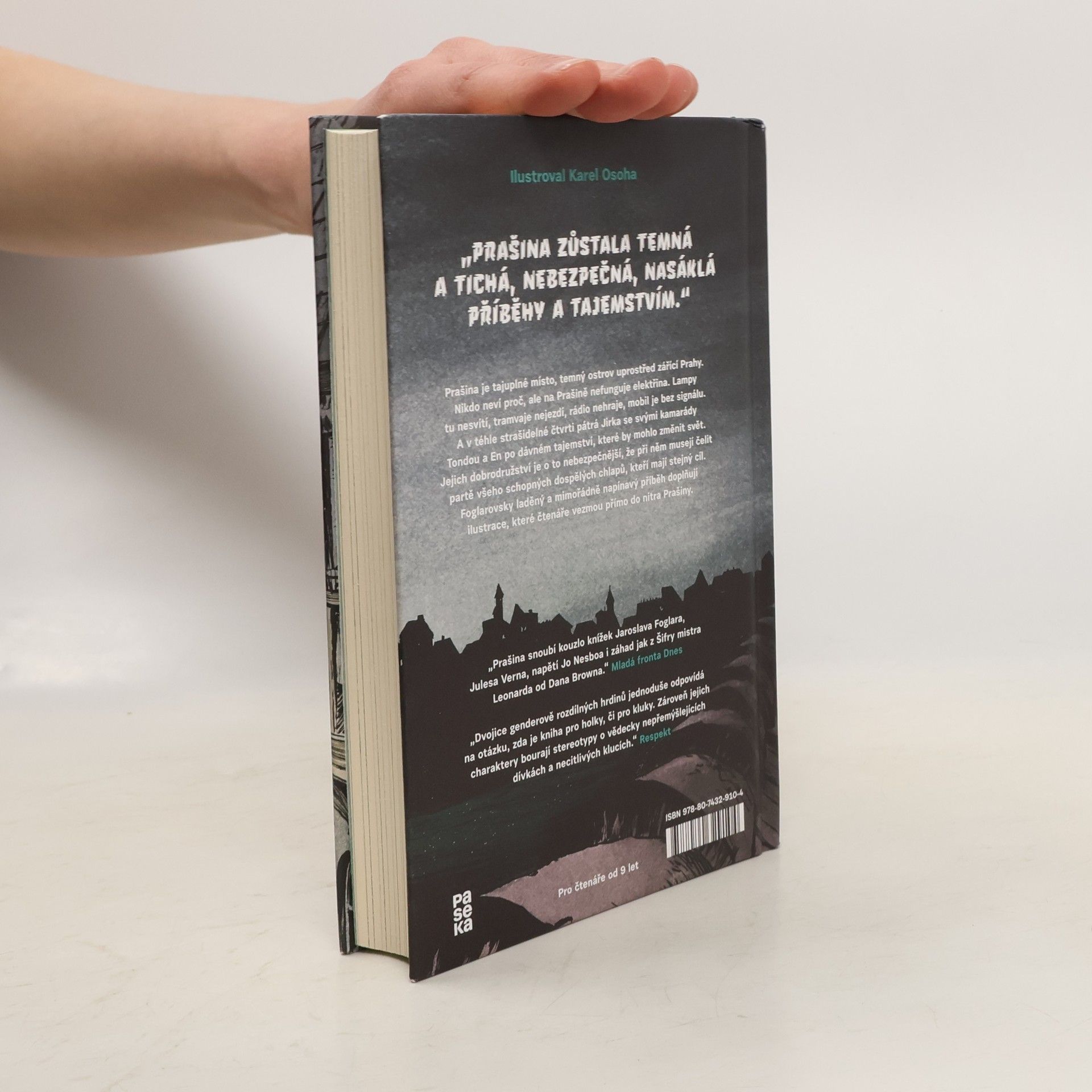 Prašina je tajuplné místo, temný ostrov uprostřed zářící Prahy. Nikdo neví proč, ale na Prašině nefunguje elektřina. Lampy tu nesvítí, tramvaje nejezdí, rádio nehraje, mobil je bez signálu. A v téhle strašidelné čtvrti pátrá Jirka se svými kamarády Tondou a En po dávném tajemství, které by mohlo změnit svět. Jejich dobrodružství je o to nebezpečnější, že při něm musejí čelit partě všeho schopných dospělých chlapů, kteří mají stejný cíl. Foglarovsky laděný a mimořádně napínavý příběh doplňují ilustrace, které čtenáře vezmou přímo do nitra Prašiny.