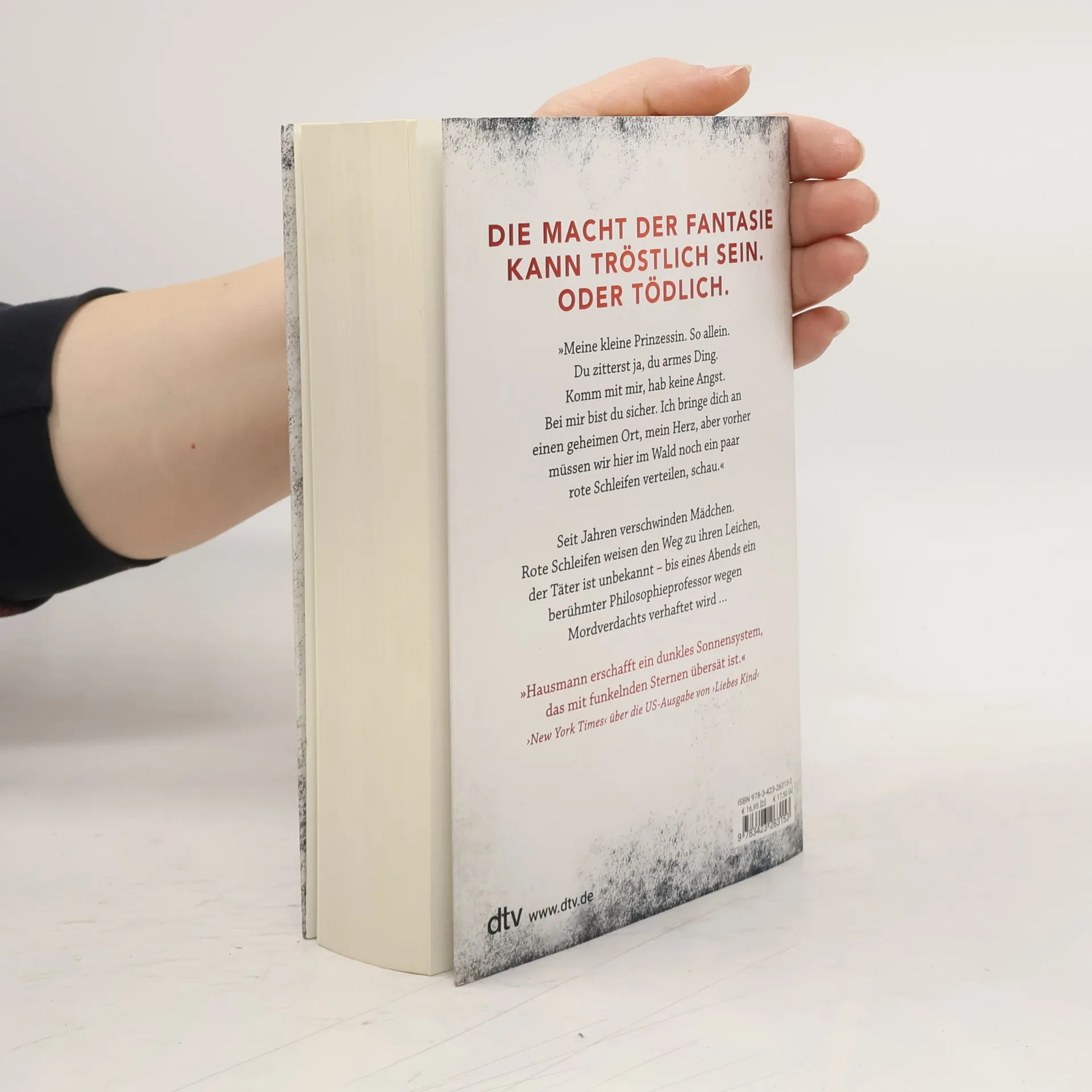 Die Macht der Gefühle kann tröstlich sein. Oder tödlich. Meine kleine Prinzessin. So allein. Du zitterst ja, du armes Ding. Komm mit mir, hab‘ keine Angst. Bei mir bist du sicher. Ich bringe dich an einen geheimen Ort, mein Herz, aber vorher müssen wir hier im Wald noch ein paar rote Schleifen verteilen, schau ... Seit vierzehn Jahren verschwinden Mädchen im Alter zwischen sechs und zehn Jahren. Rote Schleifenbänder weisen der Polizei den Weg zu ihren Leichen. Vom Täter fehlt seit vierzehn Jahren jede Spur. Eines Abends wird der international renommierte Philosophieprofessor und Anthropologe Walter Lesniak im Beisein seiner Tochter Ann verhaftet. Die Anklage: zehn Morde an jungen Mädchen. „Professor Tod“ titelt die Boulevardpresse. Doch Ann wird die Unschuld ihres Vaters beweisen. Für sie und die LeserInnen beginnt eine Reise in die dunkelsten Räume der menschlichen Seele … Von der Bestseller-Autorin Romy Hausmann sind weitere spannende Thriller bei dtv erschienen (»Liebes Kind«, »Marta schläft«) sowie das Sachbuch »TRUE CRIME. Der Abgrund in dir«.