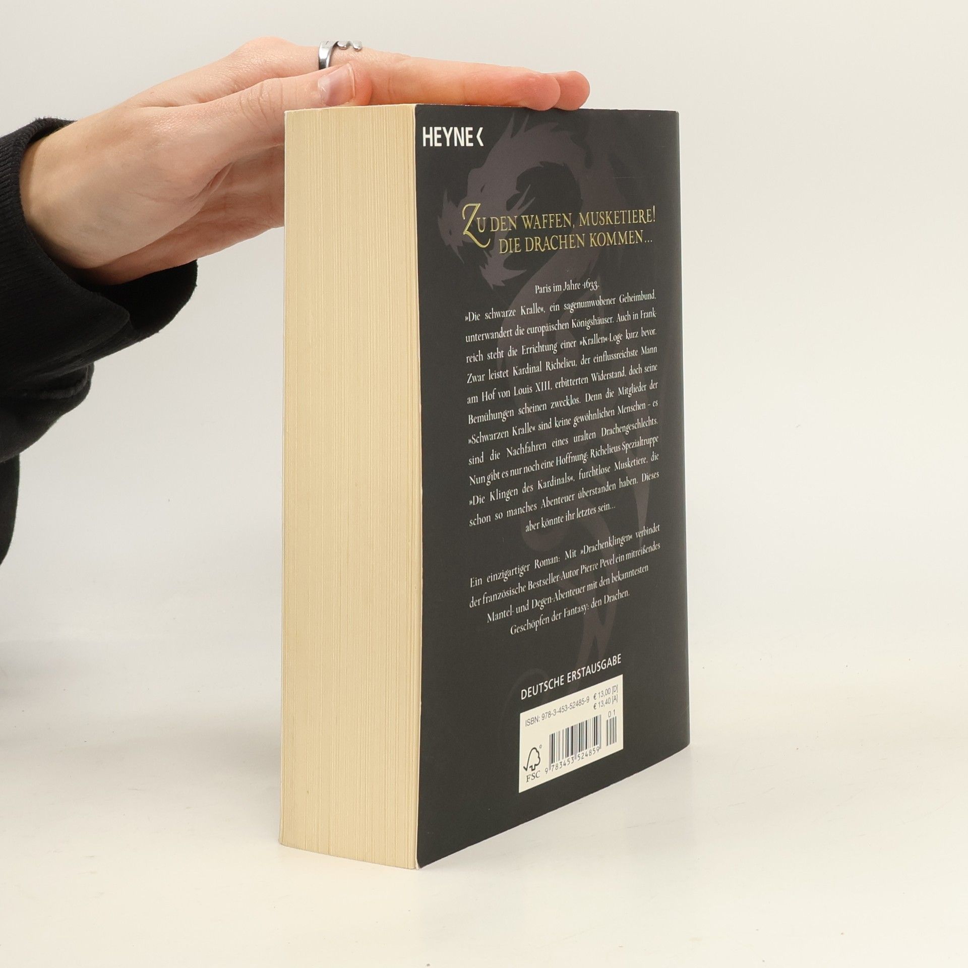 „Zu den Waffen, Musketiere! Die Drachen kommen!“ Packende Duelle, rasante Verfolgungsjagden über die Dächer von Paris, düstere Intrigen und magische Zeremonien – „Drachenklingen“ lässt keine Leserwünsche offen. Wir schreiben das Jahr 1633. Ein dunkler Geheimbund – „Die schwarze Kralle“ – unterwandert die europäischen Königshäuser. Auch in Frankreich steht die Errichtung einer „Krallen“-Loge kurz bevor. Zwar leistet Kardinal Richelieu, der einflussreichste Mann am Hof von Louis XIII., erbitterten Widerstand, doch seine Bemühungen scheinen zwecklos. Denn die Mitglieder der „Schwarzen Kralle“ sind keine gewöhnlichen Menschen – es sind die Nachfahren eines uralten Drachengeschlechts. Nun gibt es nur noch eine Hoffnung: Richelieus Spezialtruppe „Die Klingen des Kardinals“, furchtlose Musketiere, die schon so manches Abenteuer überstanden haben. Doch dieses könnte ihr letztes sein … Ein unvergessliches Abenteuer für alle Altersgruppen