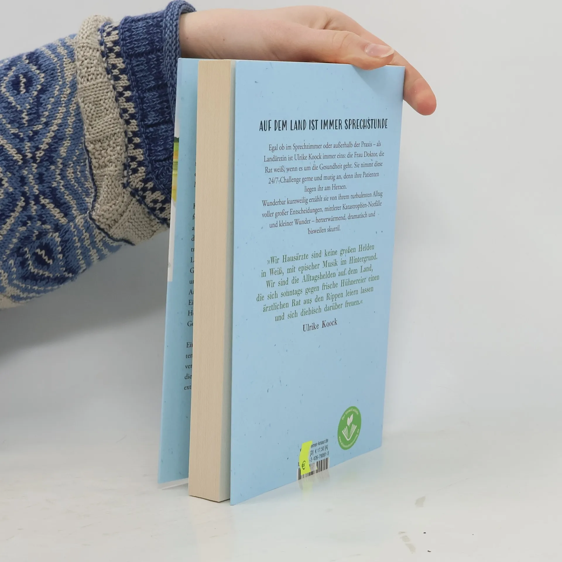 Ob im Sprechzimmer oder außerhalb der Praxis – als Landärztin ist Ulrike Koock immer Frau Doktor, die Rat weiß, wenn es um die Gesundheit und Medizin geht. Sie nimmt diese Challenge gerne und mutig an, denn ihre Patienten liegen ihr am Herzen. Ein unverstellter Blick auf einen turbulenten Alltag voller großer Entscheidungen, mittlerer Katastrophen-Notfälle und kleiner Wunder.Die Tante hat's im Rücken, das Ergebnis der Darmspiegelung ist da – egal ob an der Supermarktkasse oder im Sprechzimmer, Neuigkeiten erfährt Frau Doktor Koock sofort. Denn sie ist Landärztin und damit alles in beste Freundin, Z-Sternchen, Autoritätsperson, Mangelware.Koocks Alltag könnte nicht herausfordernder Tapfer trotzt sie dem Mega-Patientenansturm zu Quartalsbeginn, meistert im Handumdrehen Notfälle von Psychosen bis Herzinfarkt, tröstet die einsame Oma, überwindet realitätsfremde Gesetzeshürden, pariert ungenierte Flirtversuche und rückt skurrile medizinische Ansichten zurecht. Als Dank gibt es dafür auch schon mal frische Eier vom Hof.Eine offenherzige Liebeserklärung an den schönsten Beruf der Welt – mit all seinen liebenswerten verschrobenen und ganz normalen Patienten, für die sie auch mal einen Hausbesuch extra fährt.