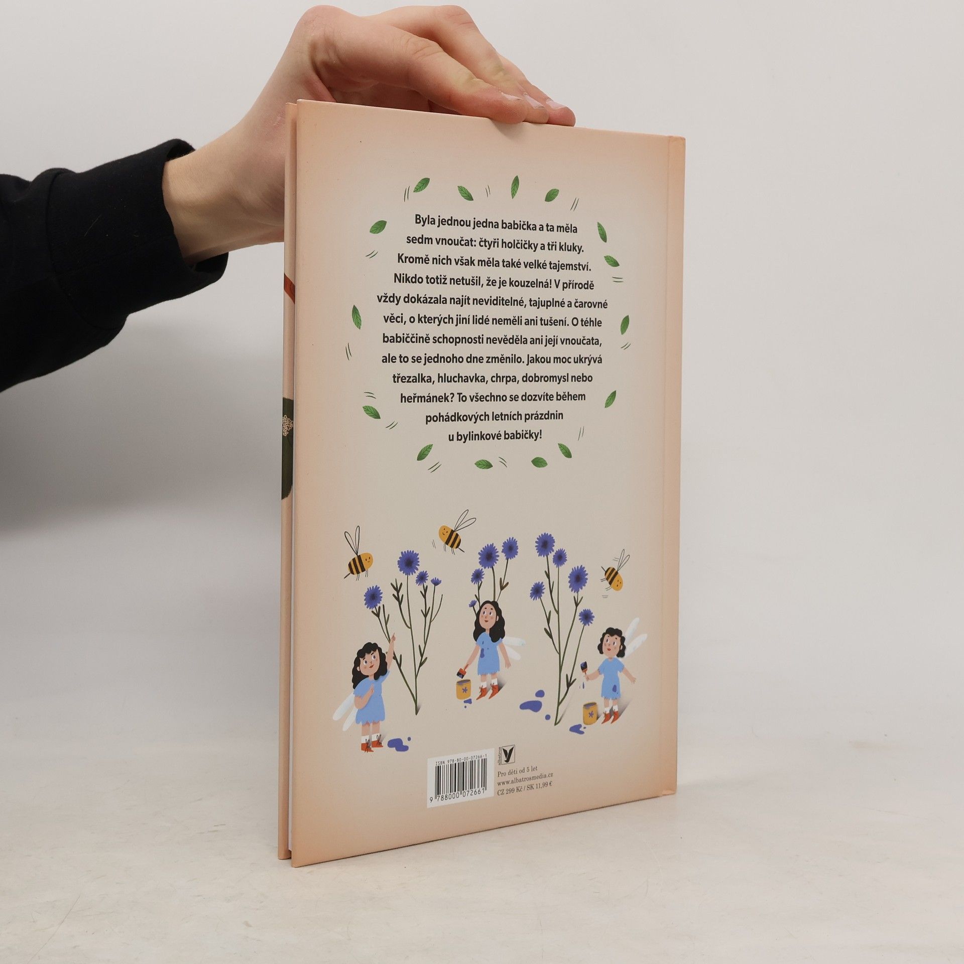 Byla jednou jedna babička a ta měla sedm vnoučat: čtyři holčičky a tři kluky. Kromě nich však měla také velké tajemství. Nikdo totiž netušil, že je kouzelná! V přírodě vždy dokázala najít neviditelné, tajuplné a čarovné věci, o kterých jiní lidé nemají ani tušení. O téhle babiččině schopnosti nevěděla ani její vnoučata, ale to se jednoho dne změnilo. Jakou moc ukrývá třezalka, hluchavka, chrpa, dobromysl nebo heřmánek? To všechno se dozvíte během pohádkových letních prázdnin u bylinkové babičky!