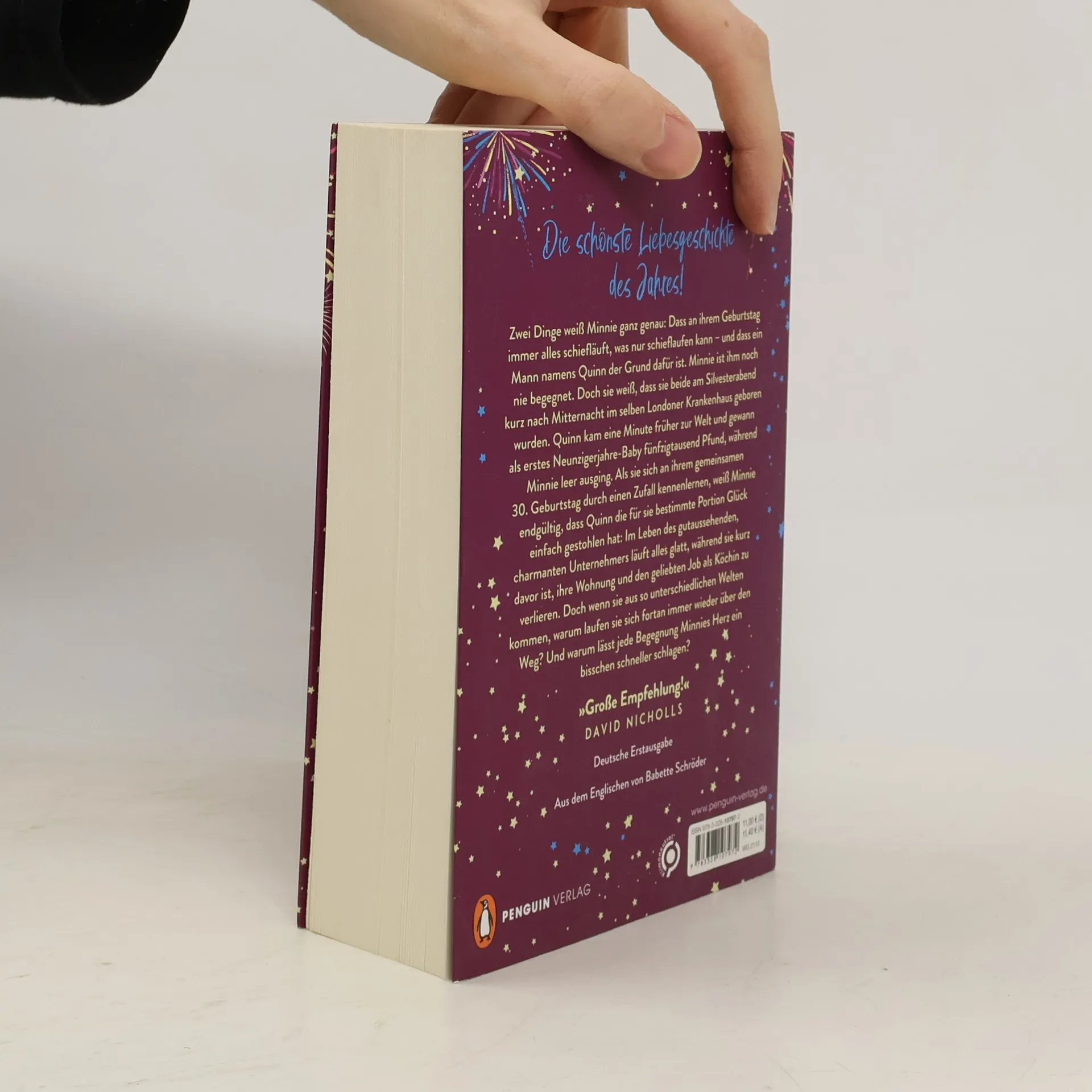 Zwei Menschen. Ein Schicksal. Eine unvergessliche Liebesgeschichte. Zwei Dinge weiß Minnie ganz genau: Dass an ihrem Geburtstag immer alles schiefläuft, was nur schieflaufen kann – und dass ein Mann namens Quinn der Grund dafür ist. Minnie ist ihm noch nie begegnet. Doch sie weiß, dass sie beide am Silvesterabend kurz nach Mitternacht im selben Londoner Krankenhaus geboren wurden. Quinn kam eine Minute früher zur Welt und gewann als erstes Neunzigerjahre-Baby fünfzigtausend Pfund, während Minnie leer ausging. Als sie sich an ihrem gemeinsamen 30. Geburtstag durch einen Zufall kennenlernen, weiß Minnie endgültig, dass Quinn die für sie bestimmte Portion Glück einfach gestohlen hat: Im Leben des gutaussehenden, charmanten Unternehmers läuft alles glatt, während sie kurz davor ist, ihre Wohnung und den geliebten Job als Köchin zu verlieren. Doch wenn sie aus so unterschiedlichen Welten kommen, warum laufen sie sich fortan immer wieder über den Weg? Und warum lässt jede Begegnung Minnies Herz ein bisschen schneller schlagen? »Genau richtig für einen Tag mit Kuscheldecke und heißer Schokolade. Unglaublich romantisch! Ein Buch wie eine Umarmung.« Josie Silver Das Taschenbuch in zauberhaft funkelnder Ausstattung.