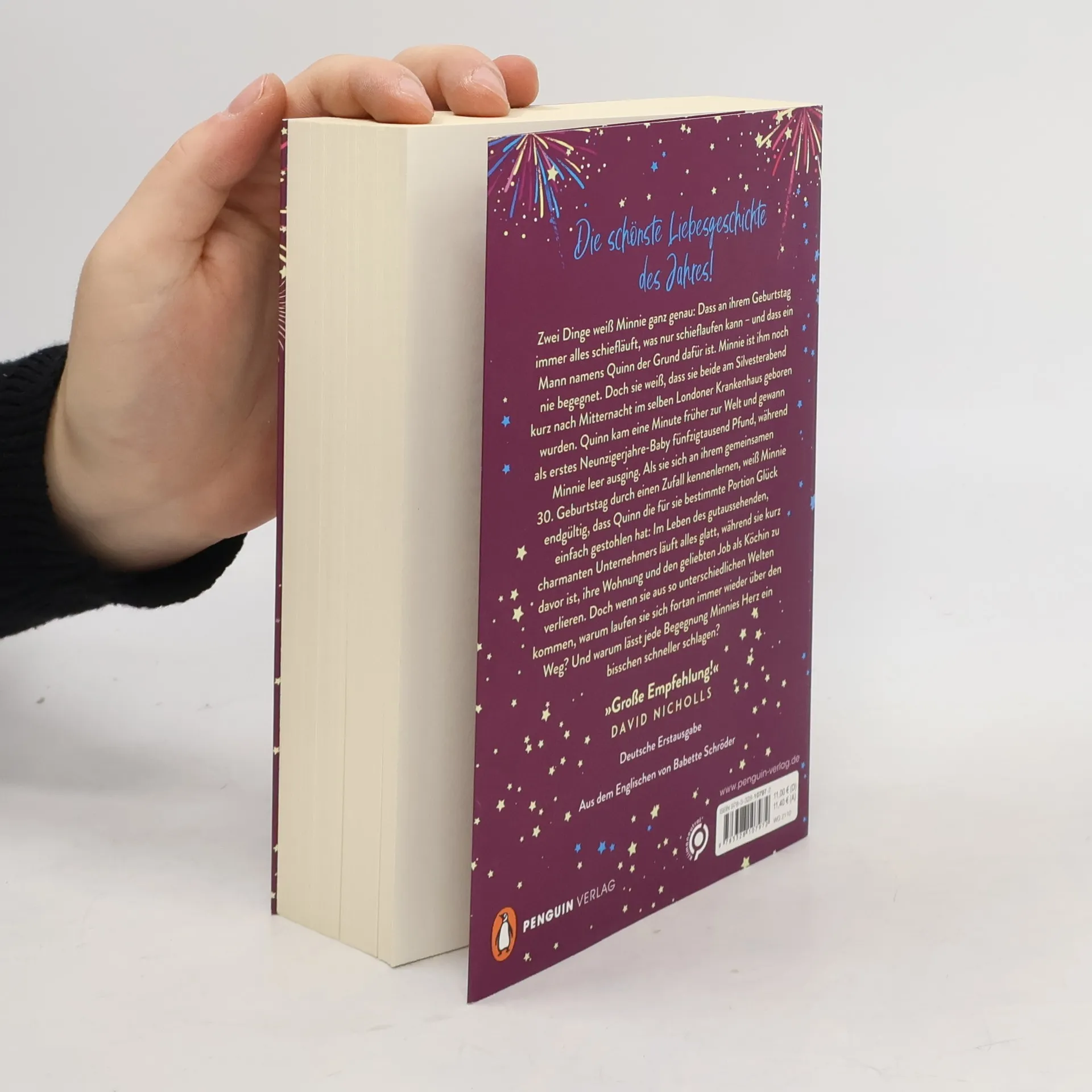 Zwei Menschen. Ein Schicksal. Eine unvergessliche Liebesgeschichte. Zwei Dinge weiß Minnie ganz genau: Dass an ihrem Geburtstag immer alles schiefläuft, was nur schieflaufen kann – und dass ein Mann namens Quinn der Grund dafür ist. Minnie ist ihm noch nie begegnet. Doch sie weiß, dass sie beide am Silvesterabend kurz nach Mitternacht im selben Londoner Krankenhaus geboren wurden. Quinn kam eine Minute früher zur Welt und gewann als erstes Neunzigerjahre-Baby fünfzigtausend Pfund, während Minnie leer ausging. Als sie sich an ihrem gemeinsamen 30. Geburtstag durch einen Zufall kennenlernen, weiß Minnie endgültig, dass Quinn die für sie bestimmte Portion Glück einfach gestohlen hat: Im Leben des gutaussehenden, charmanten Unternehmers läuft alles glatt, während sie kurz davor ist, ihre Wohnung und den geliebten Job als Köchin zu verlieren. Doch wenn sie aus so unterschiedlichen Welten kommen, warum laufen sie sich fortan immer wieder über den Weg? Und warum lässt jede Begegnung Minnies Herz ein bisschen schneller schlagen? »Genau richtig für einen Tag mit Kuscheldecke und heißer Schokolade. Unglaublich romantisch! Ein Buch wie eine Umarmung.« Josie Silver Das Taschenbuch in zauberhaft funkelnder Ausstattung.