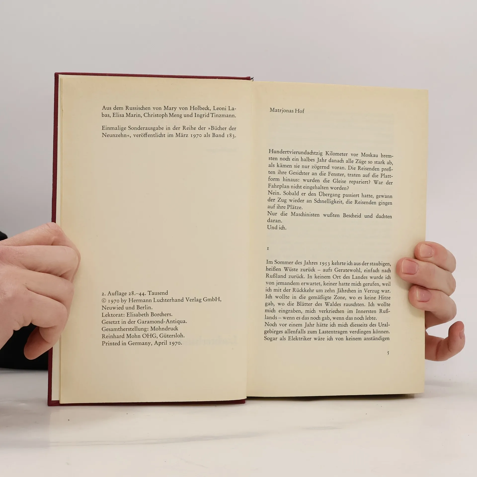 Alexander Solschenizyn erzählt hier eine altbekannte Geschichte. Voller Begeisterung stürzen sich die jungen Schüler in den Bau ihrer neuen Schule, alles soll besser und schöner werden. Am Ende stellt sich jedoch heraus, dass der Bau nie als Schule gedacht wird und auf Anordnung der Parteioberen eine andere Institution dort ihre Heimat finden soll… Auch in dieser Erzählung bleibt Solschenizyn seiner Berufung als Chronist der Sowjetherrschaft treu.