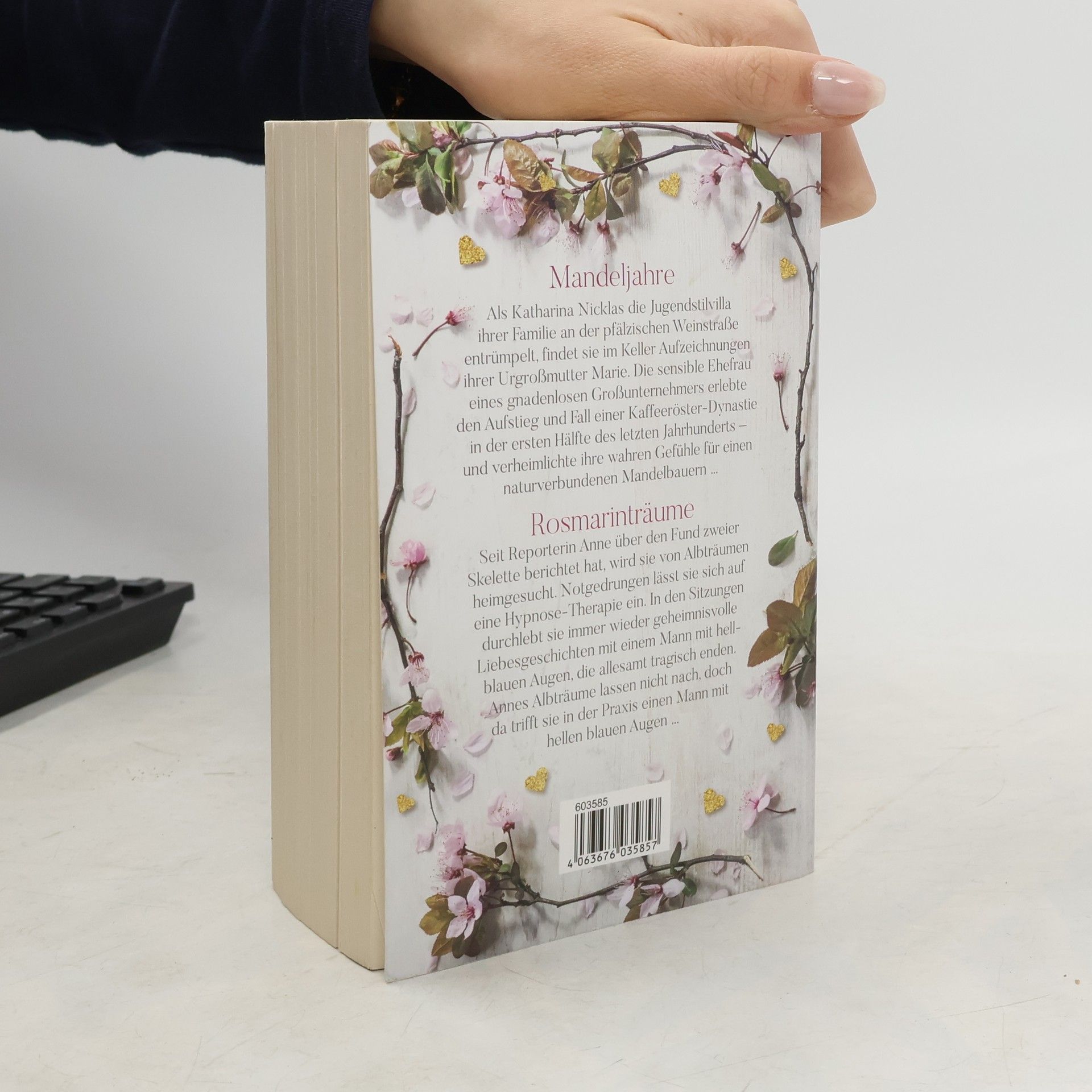 MANDELJAHREAls Katharina Nicklas die Jugendstilvilla ihrer Familie an der pfälzischen Weinstraße entrümpelt, findet sie im Keller Aufzeichnungen ihrer Urgroßmutter Marie. Die sensible Ehefrau eines gnadenlosen Großunternehmers erlebte den Aufstieg und Fall einer Kaffeeröster-Dynastie in der ersten Hälfte des letzten Jahrhunderts - und verheimlichte ihre wahren Gefühle für einen naturverbundenen Mandelbauern...ROSMARINTRÄUMESeit Reporterin Anne über den Fund zweier Skelette berichtet hat, wird sie von Albträumen heimgesucht. Notgedrungen lässt sie sich auf eine Hypnose-Therapie ein. In den Sitzungen durchlebt sie immer wieder geheimnisvolle Liebesgeschichten mit einem Mann mit hellblauen Augen, die allesamt tragisch enden. Annes Albträume lassen nicht nach, doch da trifft sie in der Praxis einen Mann mit hellen blauen Augen...