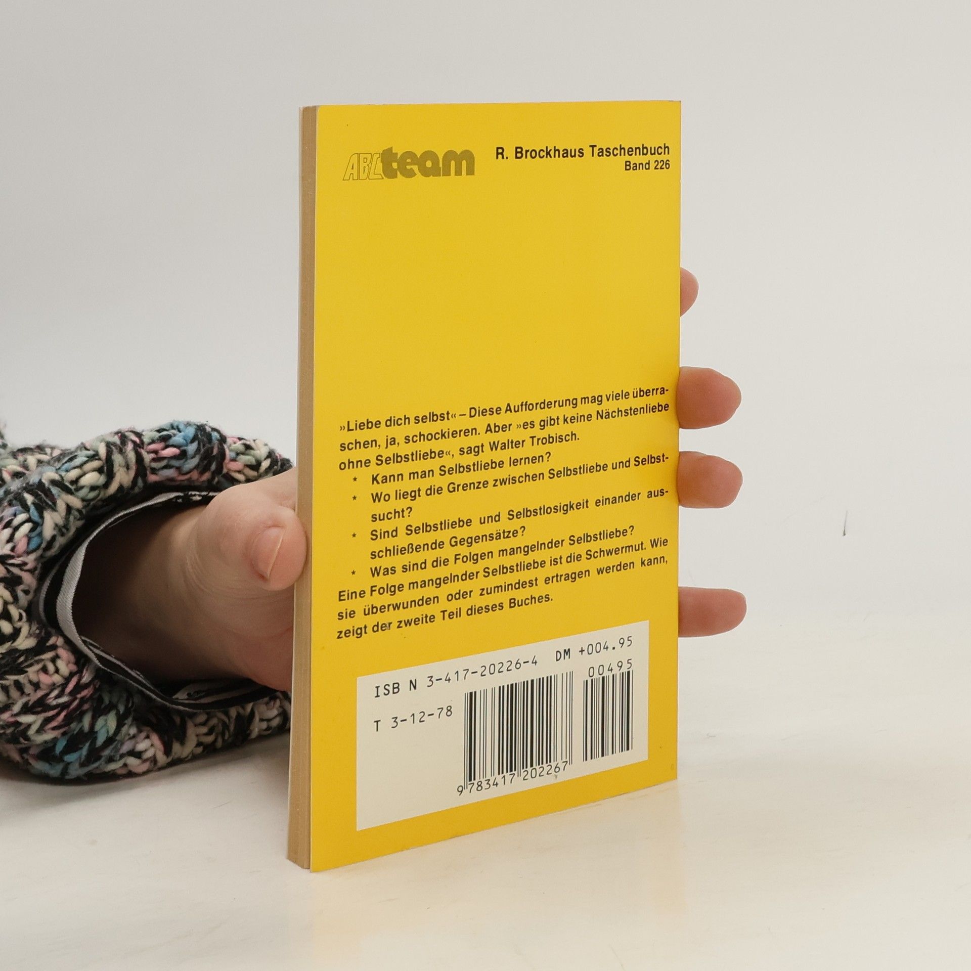 Liebe dich selbst, um andere Menschen und Gott lieben zu können. Diese Aufforderung kann viele überraschen oder sogar schockieren. Walter Trobisch behauptet, dass „Liebe zum Nächsten ohne Liebe zu sich selbst nicht existiert“. Wenn das zutrifft, stehen wir vor der Aufgabe, uns zuerst selbst anzunehmen. Damit gewinnen auch die Fragen an Aktualität, die in diesem Buch praktisch beantwortet werden: · Kann man sich Selbstliebe aneignen? · Wo liegt die Grenze zwischen Selbstliebe und Egoismus? · Schließen sich Selbstliebe und Altruismus gegenseitig aus? · Welche Folgen hat unzureichende Selbstliebe? Einer der schwerwiegenden Folgen fehlender Selbstliebe – Depressionen – wird von Walter Trobisch besonders gründlich behandelt. Wie man sie überwinden oder lernen kann, mit ihr zu leben, zeigt die zweite Hälfte des Buches mit dem Titel Trudnomyslnost.