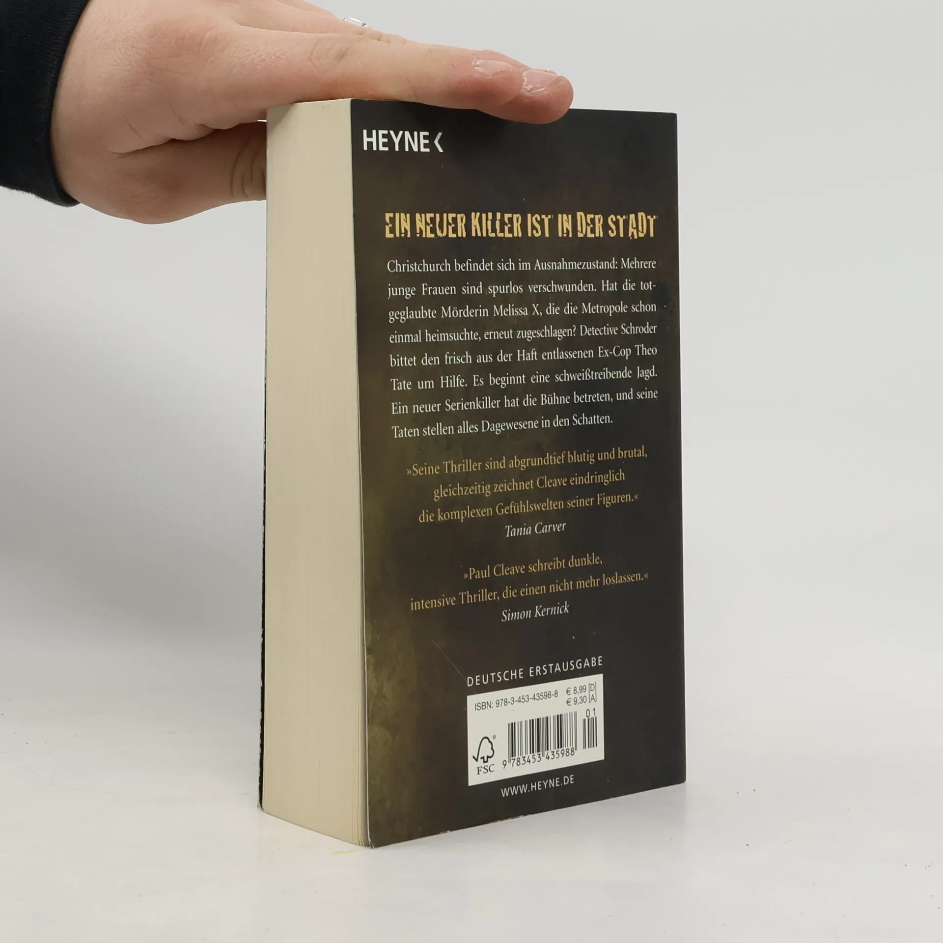 Ein neuer Killer ist in der Stadt Christchurch befindet sich im Ausnahmezustand: Mehrere junge Frauen sind spurlos verschwunden. Hat die totgeglaubte Mörderin Melissa X, die die Metropole schon einmal heimsuchte, erneut zugeschlagen? Detective Schroder bittet den frisch aus der Haft entlassenen Ex-Cop Theo Tate um Hilfe. Es beginnt eine schweißtreibende Jagd. Ein neuer Serienkiller hat die Bühne betreten, und seine Taten stellen alles Dagewesene in den Schatten.