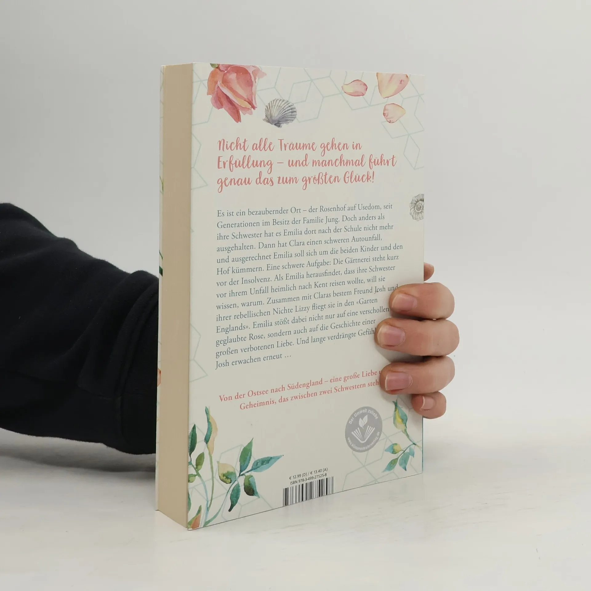 Von der Ostsee nach Südengland - eine große Liebe und ein Geheimnis, das zwischen zwei Schwestern steht. Es ist ein bezaubernder Ort – der Rosenhof auf Usedom, der sich seit Generationen im Besitz der Familie Jung befindet. Anders als ihre Schwester hat es Emilia auf der Ostseeinsel nach der Schule aber nicht mehr ausgehalten, und sie ist nach Paris gegangen. Doch dann hat Clara einen schweren Autounfall und bittet ausgerechnet sie, sich um ihre beiden Kinder zu kümmern. Emilia ist mit dieser Aufgabe vollkommen überfordert. Außerdem steht die Rosengärtnerei kurz vor der Insolvenz. Als sie herausfindet, dass ihre Schwester nach Kent reisen wollte, um dort nach Wegen zu suchen, den Familienbetrieb zu retten, fliegt sie zusammen mit Claras bestem Freund Josh und ihrer rebellischen 13jährigen Nichte Lizzy ins Land der Rosen. Ihre Reise führt die drei vom berühmten Sissinghurst Garden über die Domstadt Canterbury bis zu dem kleinen Küstendorf St. Margaret´s at Cliffe. Emilia stößt dabei nicht nur auf eine verschollen geglaubte Rose, sondern auch auf die Geschichte einer großen, verbotenen Liebe. Und auch lange vergessene Gefühle für Josh erwachten erneut ...