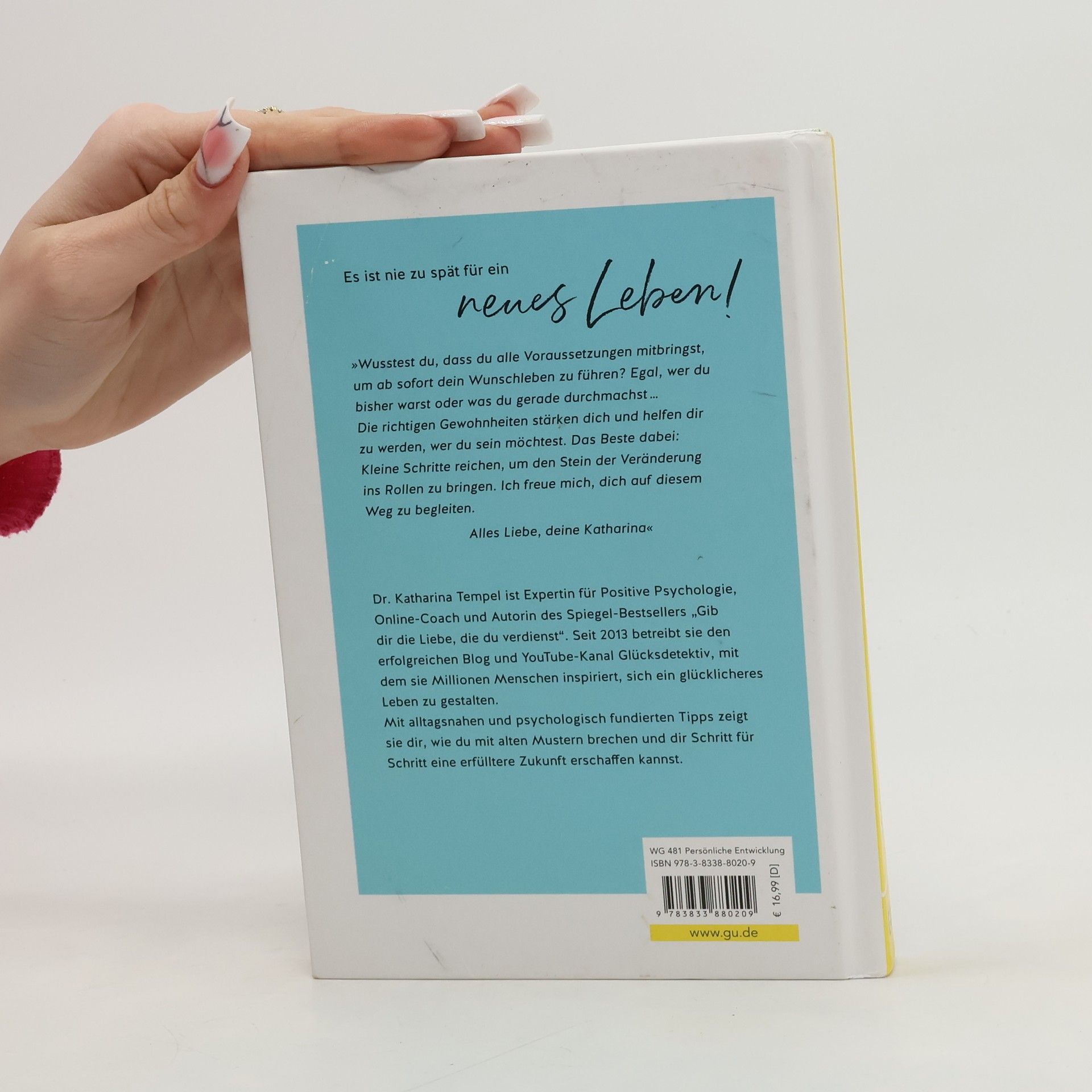 „Ein besseres Leben ist möglich. Für dich, für mich ... für jeden von uns.“ Träumst du von einem besseren Leben , aber erlebst doch immer wieder das Gleiche? Möchtest du glücklicher sein, aber kannst nicht raus aus deiner Haut? Dr. Katharina Tempel, Expertin für Positive Psychologie, zeigt dir, wie du mit Hilfe kleiner Schritte dein Leben verändern und zu dem Menschen werden kannst, der du sein möchtest . In ihrem Buch geht es darum, sich wirklich und nachhaltig ein anderes Leben und eine neue Realität aufzubauen – ohne hohle Phrasen, aber mit ganz viel Menschlichkeit, Pragmatismus und bewegenden Geschichten aus dem echten Leben. Du erfährst: welche Gewohnheiten dich deinem Wunschleben näherbringen und von welchen Mustern du dich lieber verabschieden solltest welche Hebel nachhaltig glücklicher machen und welche in die Irre führen welche Glückrituale dir helfen neue Energie zu gewinnen wie du deine innere Haltung und Denkgewohnheiten veränderst wie du zu dem Menschen geworden bist, der du heute bist und wie du dich mit Hilfe von Mikrogewohnheiten neu erfinden kannst. Wenn du genug davon hast, ständig mehr vom Gleichen zu erleben, wenn du einer Krise entkommen oder dir eine neue, glücklichere Realität erschaffen möchtest, führt an diesem Buch kein Weg vorbei. Du hast die Freiheit zu wählen, wie du leben möchtest. Deswegen schenk dir das Leben, von dem du träumst!