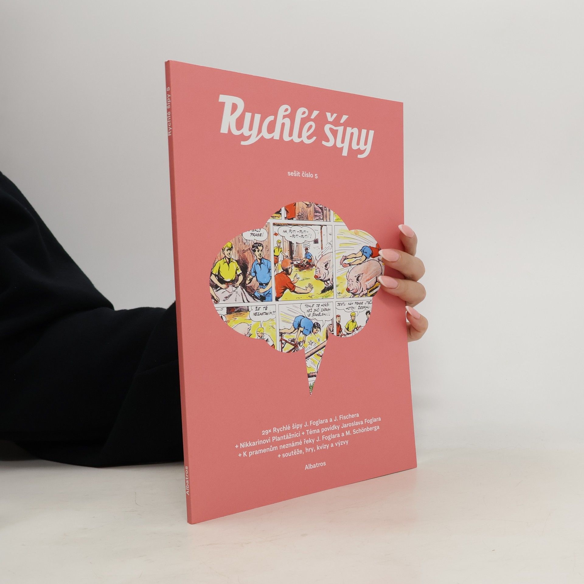 Pátý sešit Rychlých šíípů! V moderním sešitovém vydání Rychlých šípů najdete původní díly slavného komiksu i nové příběhy ze světa Jaroslava Foglara od současných tvůrců. Tématem jsou tentokrát povídky – výtvarně je zpracovali Jiří Grus, Miroslav Schönberg a Michal Kocián.Nechybí ani Nikkarinovi Plantážníci nebo únikovka od Honzy Smolíka.