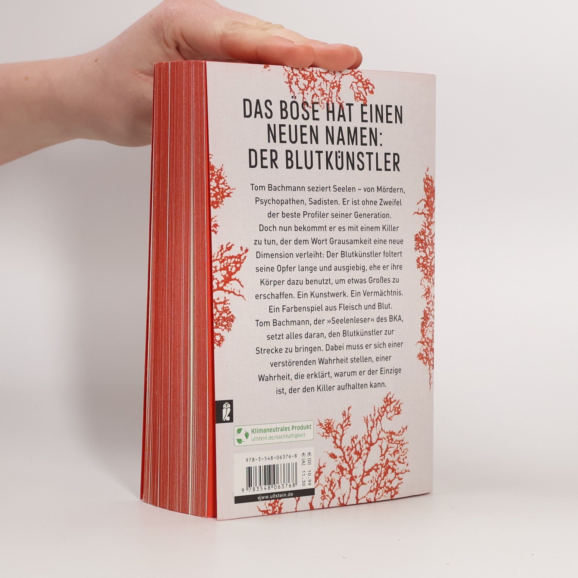 Dieser Thriller schickt Sie in die schwärzesten Abgründe des Bösen Tom Bachmann seziert Seelen – von Mördern, Psychopathen, Sadisten. Dabei geht er akribisch vor, um das Böse, das diese Menschen in sich tragen, zu verstehen. Tom Bachmann ist ohne Zweifel der beste Profiler seiner Generation. Doch nun bekommt er es mit einem Killer zu tun, der dem Wort Grausamkeit eine neue Dimension verleiht: dem Blutkünstler. Der Blutkünstler foltert seine Opfer lange und ausgiebig, ehe er ihre Körper dazu benutzt, um etwas Großes zu erschaffen. Ein Kunstwerk. Ein Vermächtnis. Ein Farbenspiel aus Fleisch und Blut. Tom Bachmann, der „Seelenleser“ des BKA, setzt alles daran, den Blutkünstler zur Strecke zu bringen. Dabei muss er sich einer verstörenden Wahrheit stellen, einer Wahrheit, die erklärt, warum er der Einzige ist, der den Killer aufhalten kann.