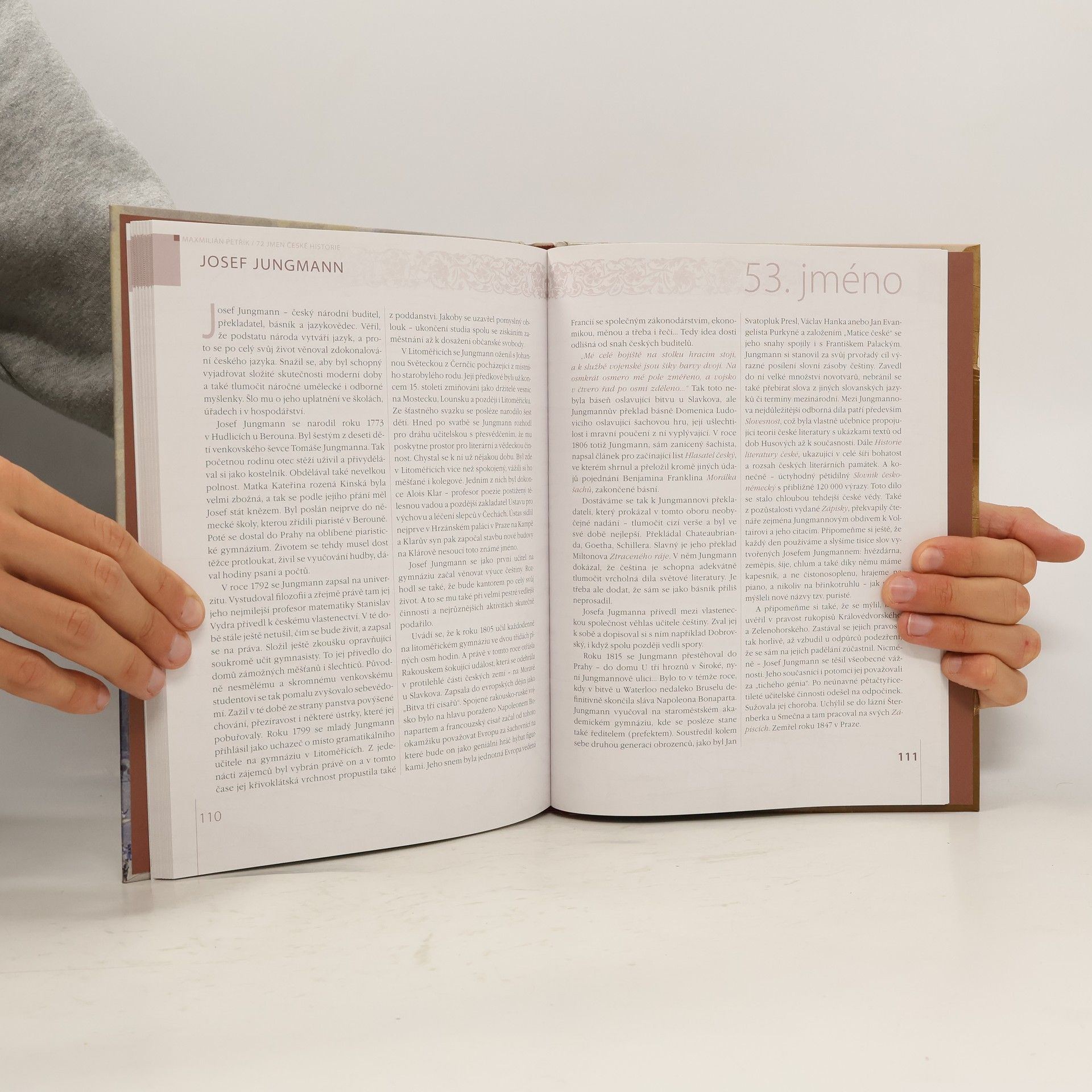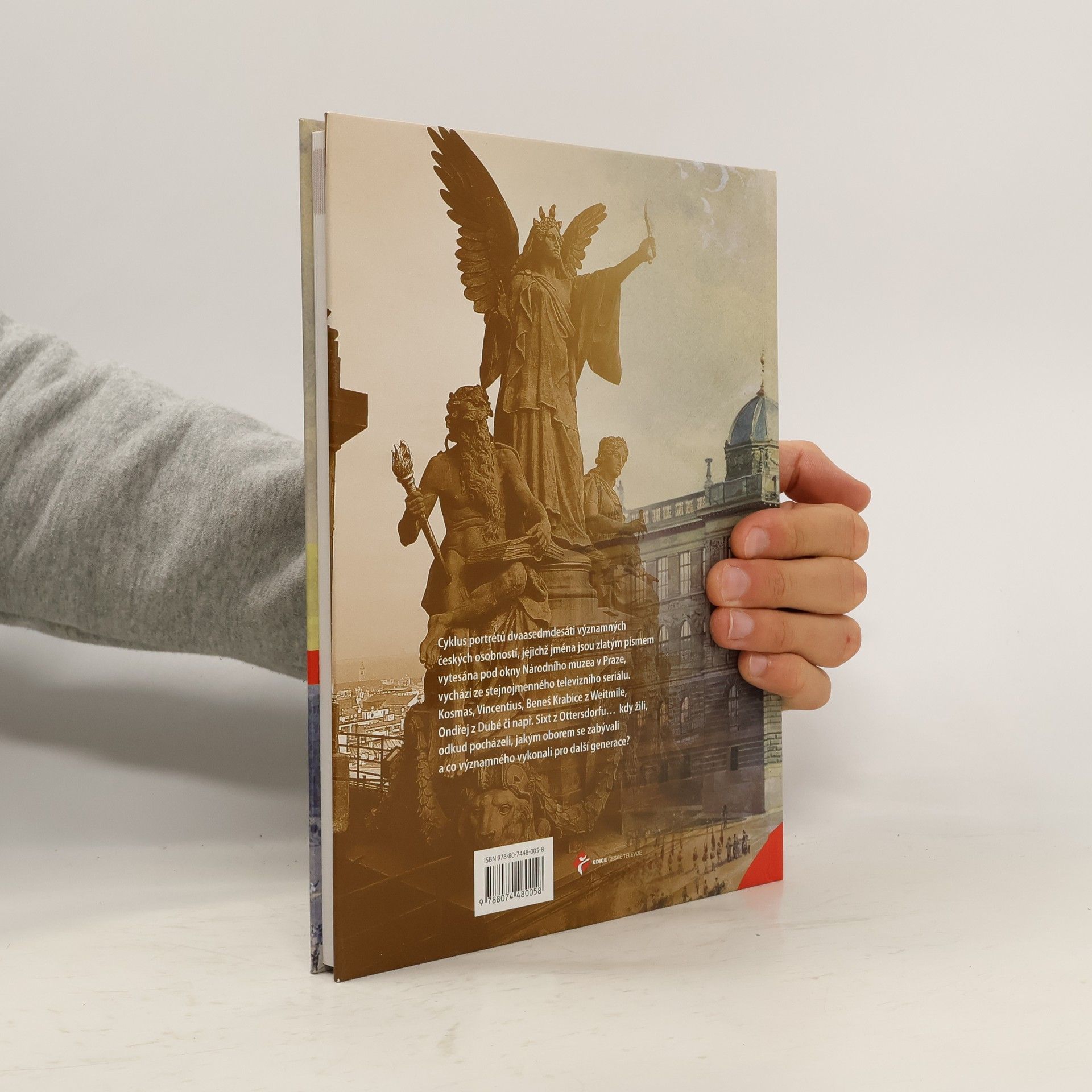 Cyklus portrétů dvaasedmdesáti významných českých osobností, jejichž jména jsou zlatým písmem vytesána pod okny Národního muzea v Praze, vychází ze stejnojmenného televizního seriálu. Kosmas, Vincentius, Beneš Krabice z Weitmile, Ondřej z Dubé či např. Sixt z Ottersdorfu kdy žili, odkud pocházeli, jakým oborem se zabývali a co významného vykonali pro další generace?