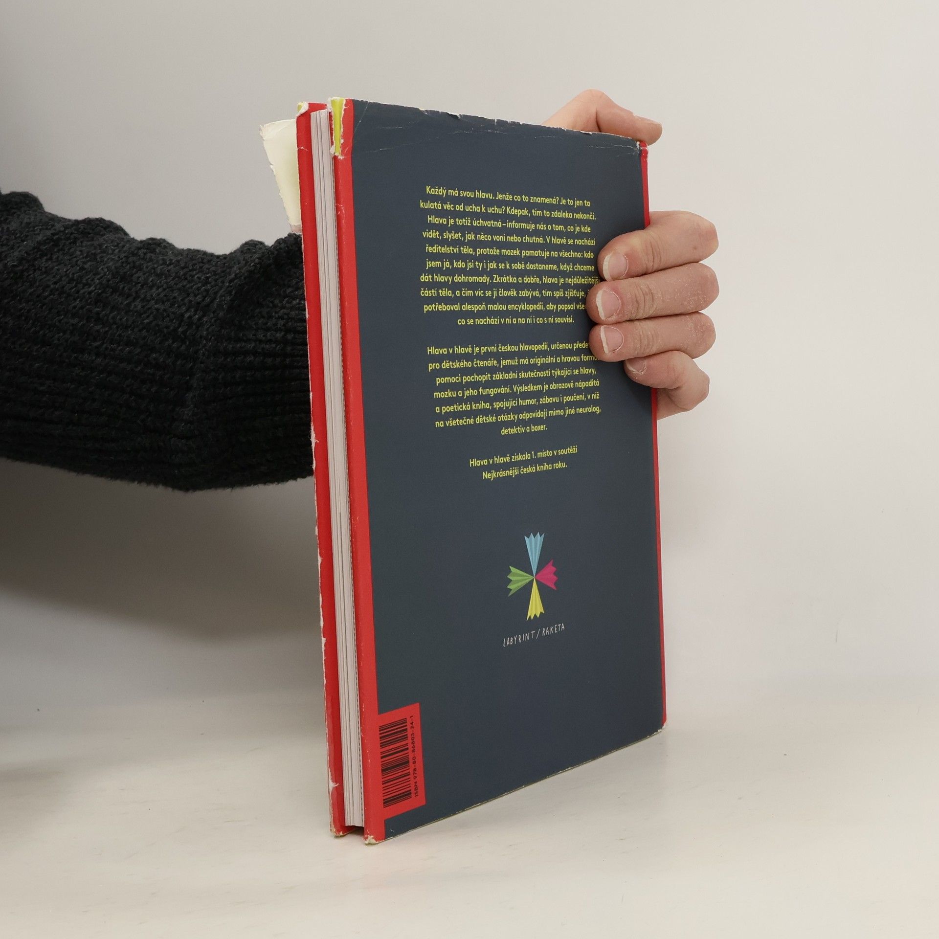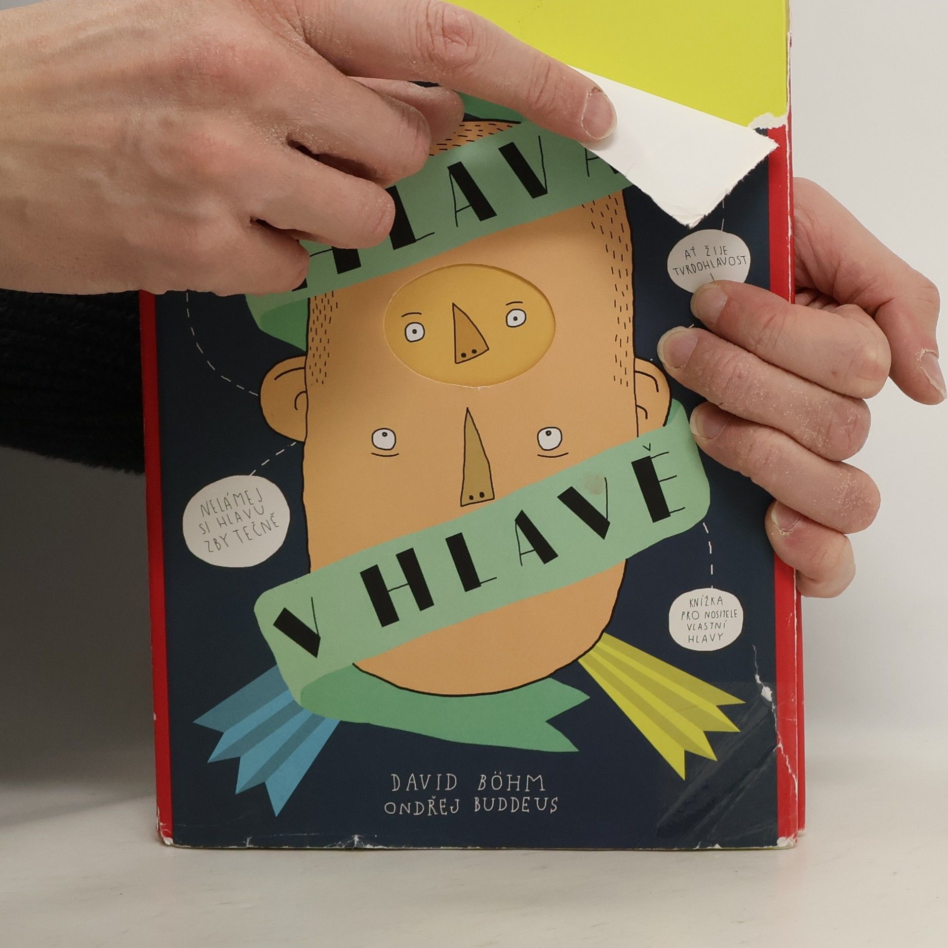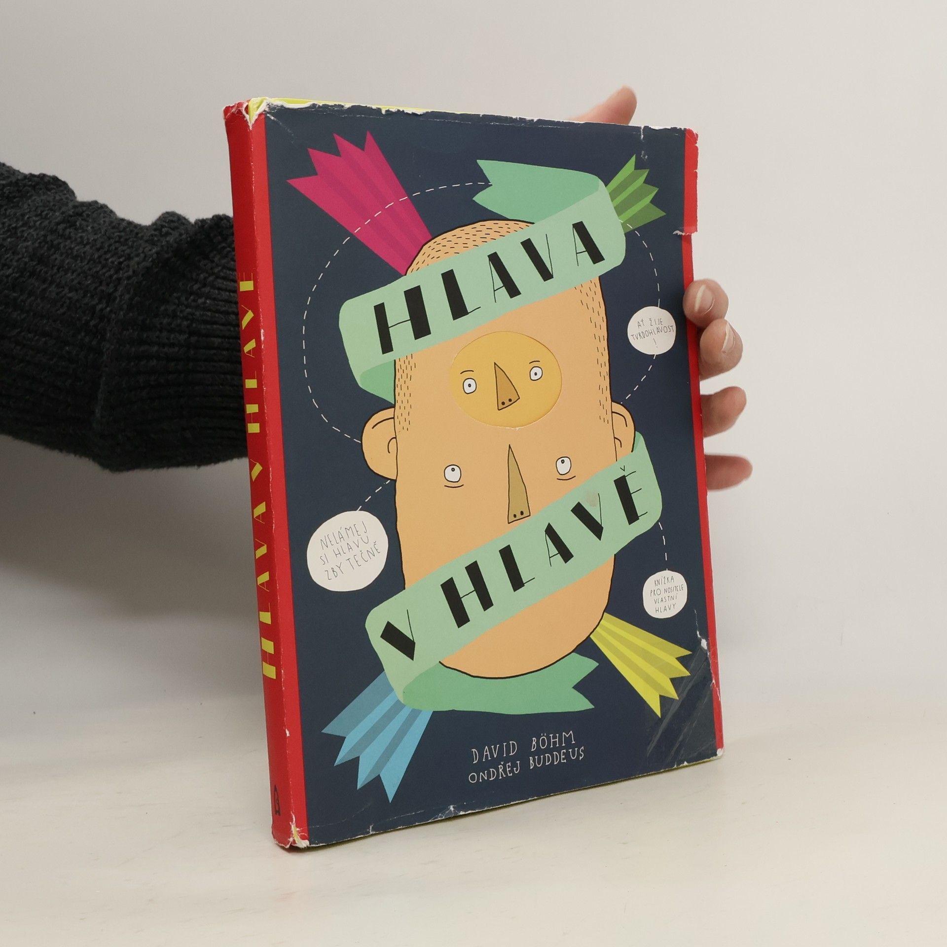 Každý má svou hlavu. Jenže co to znamená? Je to jen ta kulatá věc od ucha k uchu? Kdepak, tím to zdaleka nekončí. Hlava je totiž úchvatná – informuje nás o tom, co je kde vidět, slyšet, jak něco voní nebo chutná. V hlavě se nachází ředitelství těla, protože mozek pamatuje na všechno: kdo jsem já, kdo jsi ty i jak se k sobě dostaneme, když chceme dát hlavy dohromady. Zkrátka a dobře, hlava je nejdůležitější částí těla a čím víc se jí člověk zabývá, tím spíš zjišťuje, že by potřeboval alespoň malou encyklopedii, aby popsal všechno, co se nachází v ní a na ní i co s ní souvisí. Hlava v hlavě je nevšední a originální publikací, první českou hlavopedií, určenou především pro dětského čtenáře, jemuž má nápaditou a hravou vizuální formou pomoci pochopit základní skutečnosti týkající se hlavy, mozku a jeho fungování. Výsledkem je vizuálně nápaditá a poetická kniha, spojující humor, zábavu i poučení, v níž na všetečné dětské otázky odpovídají nejen neurolog, boxer či detektiv.