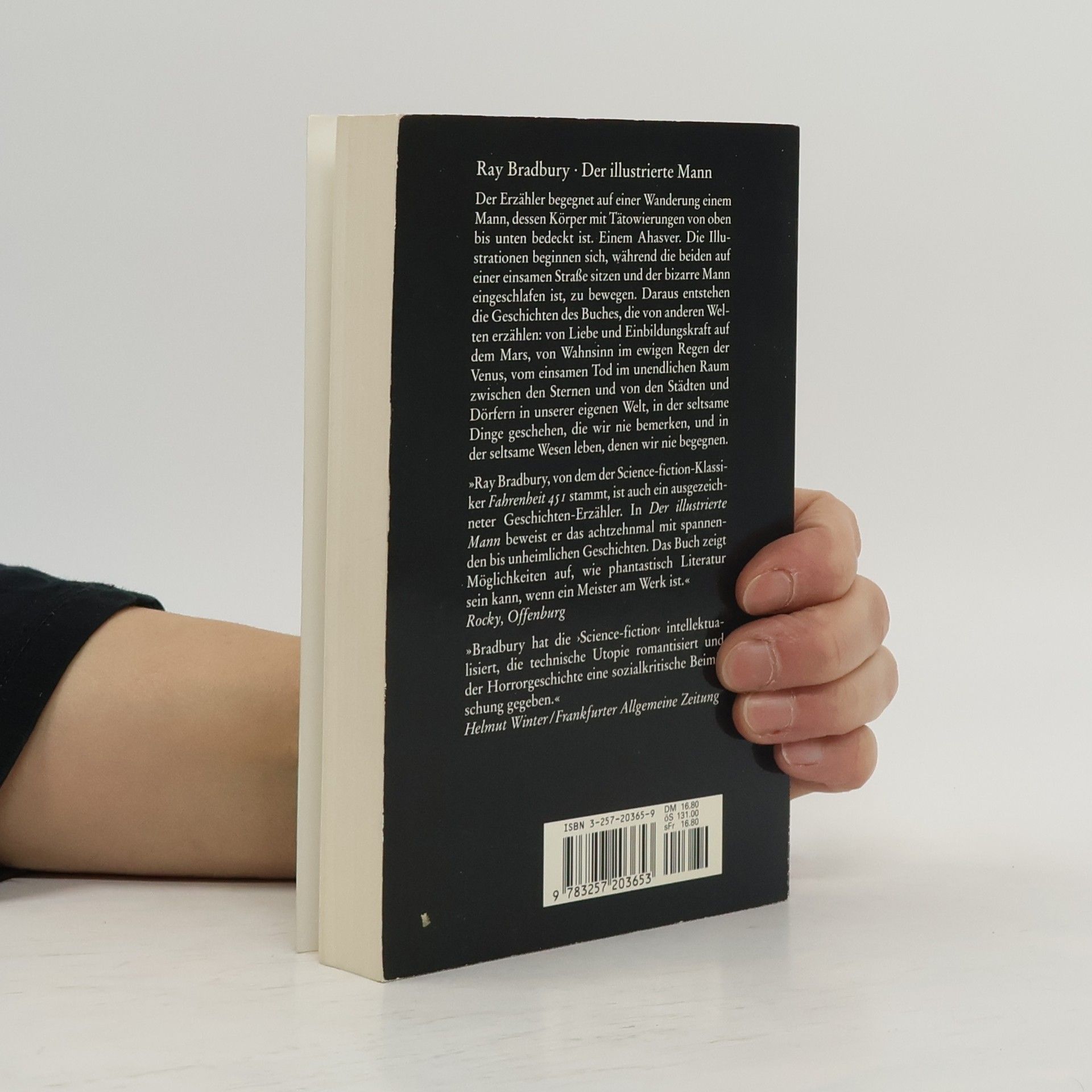 In ›Der illustrierte Mann‹ steht ein Mann im Mittelpunkt, dessen ganzer Körper tätowiert ist. Aus diesen Tätowierungen hat Ray Bradbury eine Folge von achtzehn Geschichten über diese und andere Welten komponiert, mit Bildern, die so scharf sind wie die Nadel des Tätowierers und so farbig wie die Tinte, die in die Haut eingebracht wird.