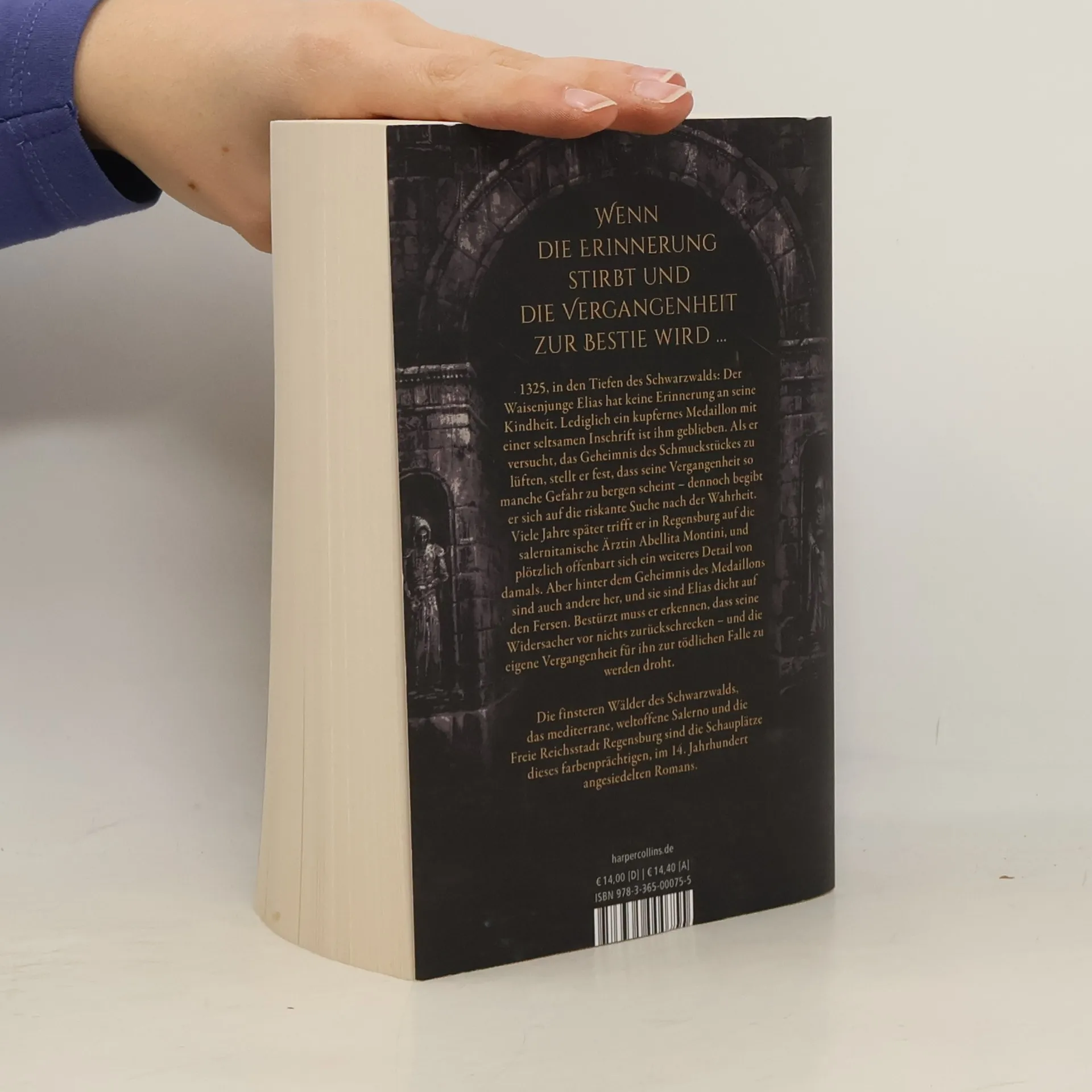 Ein mysteriöses Medallion, eine mörderische Intrige und zwei Waisen, die sich durch das Leben kämpfen Vom finsteren Schwarzwald über das mediterrane Salerno in die mächtige Reichsstadt Regensburg 1325 in den Tiefen des Schwarzwalds: Der Waisenjunge Elias hat keine Erinnerung an seine Kindheit. Lediglich ein kupfernes Medaillon mit einer seltsamen Inschrift ist ihm geblieben. Als er versucht, das Geheimnis des Schmuckstückes zu lüften, stellt er fest, dass seine Vergangenheit so manche Gefahr zu bergen scheint – dennoch begibt er sich auf die riskante Suche nach der Wahrheit. Viele Jahre später trifft er in Regensburg auf die salernitanische Ärztin Abellita Montini, und plötzlich offenbart sich ein weiteres Detail von damals. Aber hinter dem Geheimnis des Medaillons sind auch andere her, und sie sind Elias dicht auf den Fersen. Bestürzt muss Elias erkennen, dass seine Widersacher auch vor Gewalt nicht zurückschrecken ...