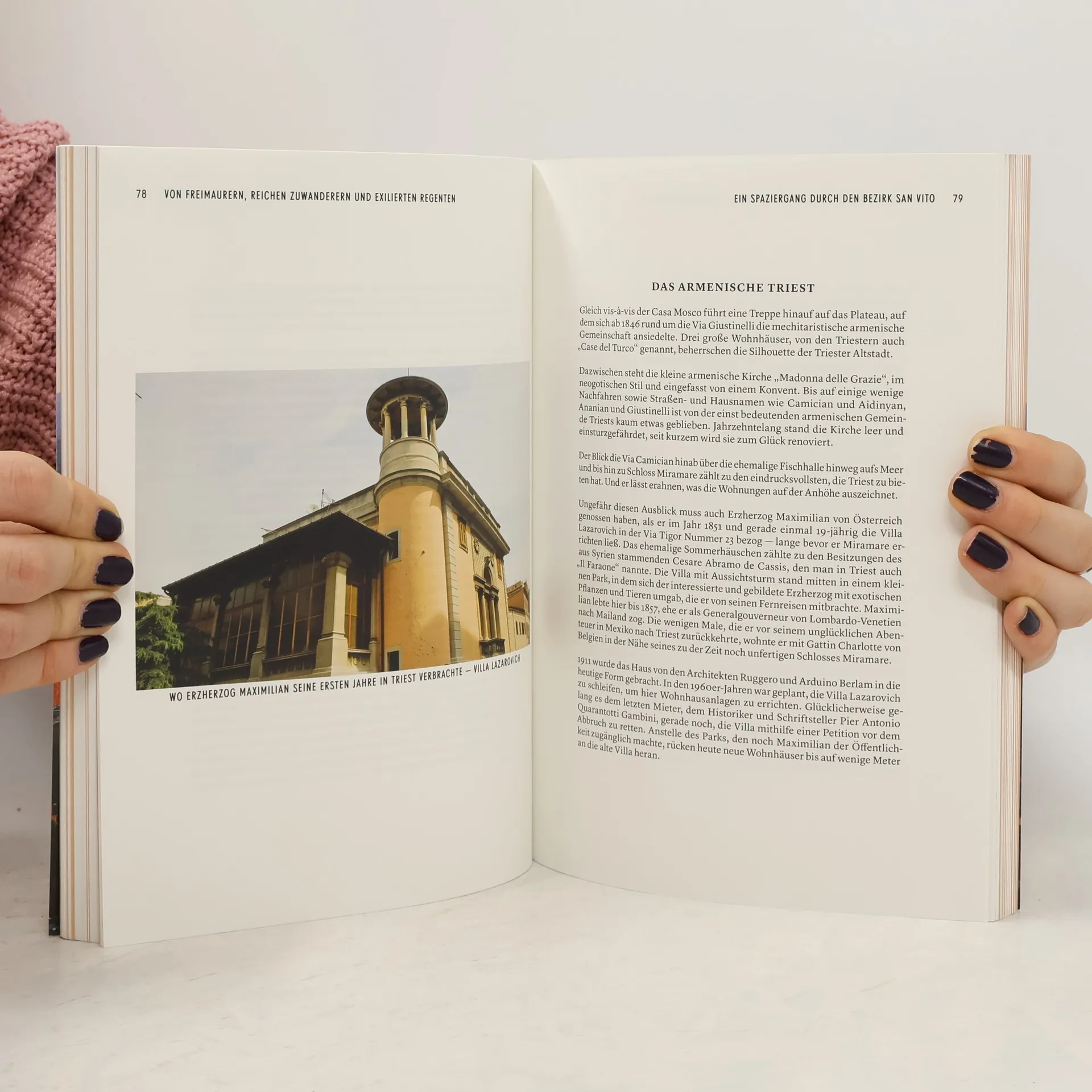 Wer sich zum ersten Mal in Triest auf der weiträumigen Piazza dell’ Unità d’Italia umschaut, könnte leicht einen falschen Eindruck bekommen. Mit seinen Palästen, den überladenen Fassaden, der großzügigen Öffnung hin zum Meer verheißt der inoffizielle Hauptplatz eine elegante Stadt mit mondänem Flair. Doch abseits der Piazza ist die Realität eine völlig andere. Triest offenbart sich – im Unterschied zu Venedig oder Florenz – nicht auf den ersten Blick. Die Hafenstadt mit ihrem morbiden Charme verlangt Zeit, will erforscht, verstanden, durchschaut werden. Die Besucherin darin zu begleiten ist das Ziel dieses Buches – indem es alle Geheimnisse lüftet: die historischen Orte und ihre zum Teil dunkle, in vielen Fällen noch aufzuarbeitende Vergangenheit gleichermaßen wie das spannende architektonische Erbe der Stadt. Aber auch die stimmigsten Badeplätze, die angesagtesten Orte für den abendlichen Aperitif und die besten Lokale für Spaghetti mit Vongole oder für Geselchtes mit Sauerkraut …