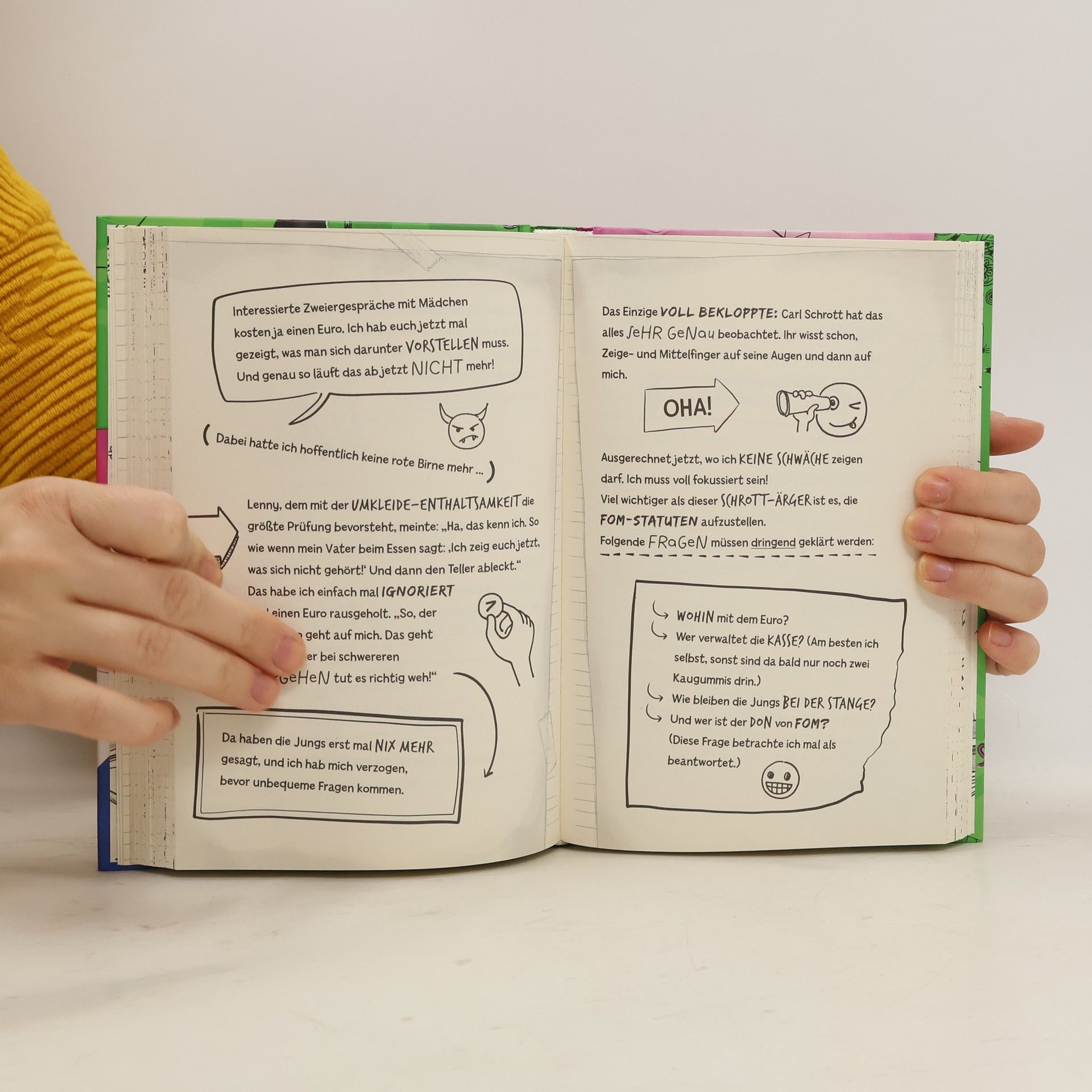 Sturmfrei mit Paul?! Karline ist nicht begeistert. Es bleibt ihr gar nichts anderes übrig, als sein Tagebuch zu lesen – als Selbstschutzmaßnahme! Karline hatte sich eigentlich auf ein eltern- und bruderfreies Wochenende gefreut und jetzt das: Paul wird auch im Haus sein! Zudem will er irgendeine oberpeinliche Zeremonie mit seinen FOM-Jüngern durchziehen. FOM bedeutet „Fun ohne Mädchen“! Na, diesen „Fun“ kann er sich abschminken, weil Karline ja immer noch heimlich sein Tagebuch liest und daher bestens im Bilde ist … Entdecke alle ungeheimen Tagebücher: Band 1: Wie mein bescheuerter Bruder Klassensprecher in meiner Klasse wurde … Band 2: Wie mein peinlicher Bruder sich auf meine Party eingeladen hat … Band 3: Wie mein nerviger Bruder mit auf meine Klassenfahrt kam … Band 4: Wie mein blöder Bruder die Hauptrolle in meinem Theaterstück spielte ... Band 5: Wie mein durchgeknallter Bruder meine Klassenlehrerin verschwinden ließ ...