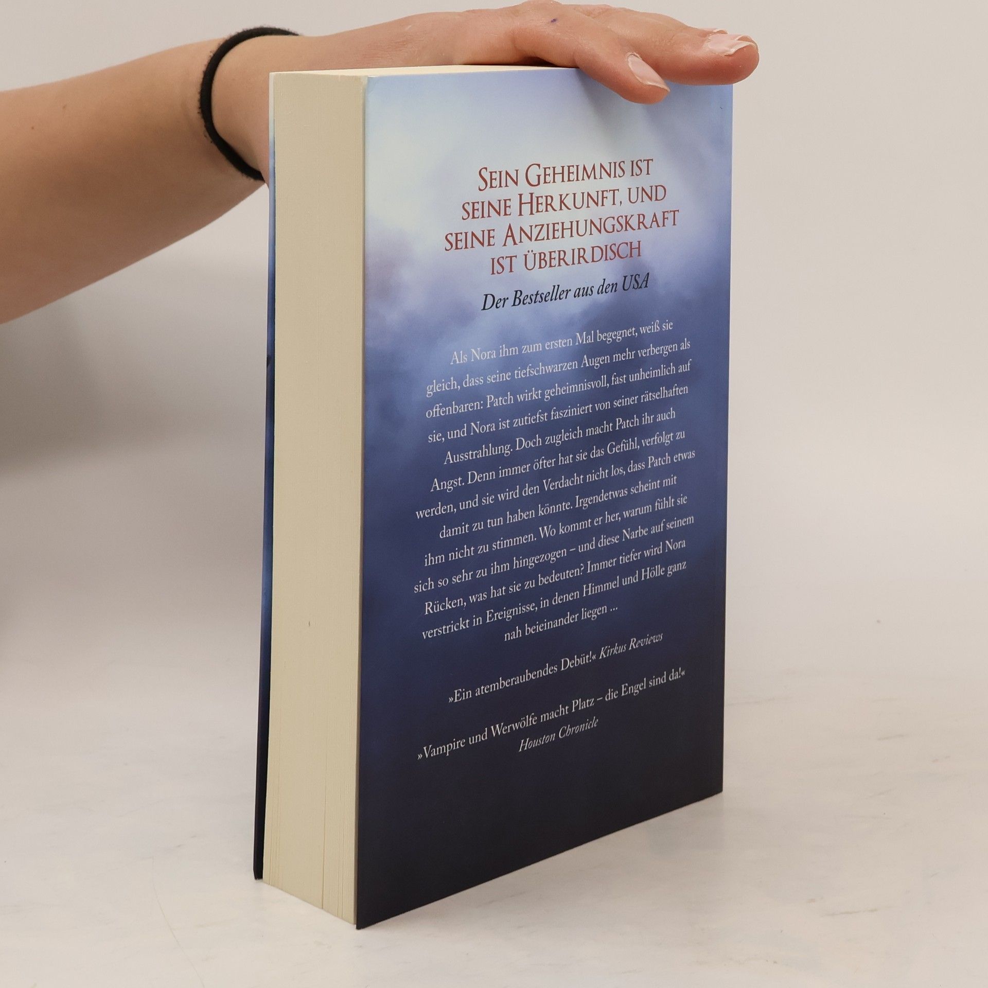 Der Himmel muss warten. Als Nora ihm zum ersten Mal begegnet, weiß sie gleich, dass seine tiefschwarzen Augen mehr verbergen als offenbaren: Patch wirkt geheimnisvoll, fast unheimlich auf sie, und Nora ist zutiefst fasziniert von seiner rätselhaften Ausstrahlung. Doch zugleich macht Patch ihr auch Angst. Denn immer öfter hat sie das Gefühl, verfolgt zu werden, und sie wird den Verdacht nicht los, dass Patch etwas damit zu tun haben könnte. Irgendetwas scheint mit ihm nicht zu stimmen. Wo kommt er her, warum fühlt sie sich so sehr zu ihm hingezogen - und diese Narbe auf seinem Rücken, was hat sie zu bedeuten? Immer tiefer wird Nora verstrickt in Ereignisse, in denen Himmel und Hölle ganz nah beieinander liegen.