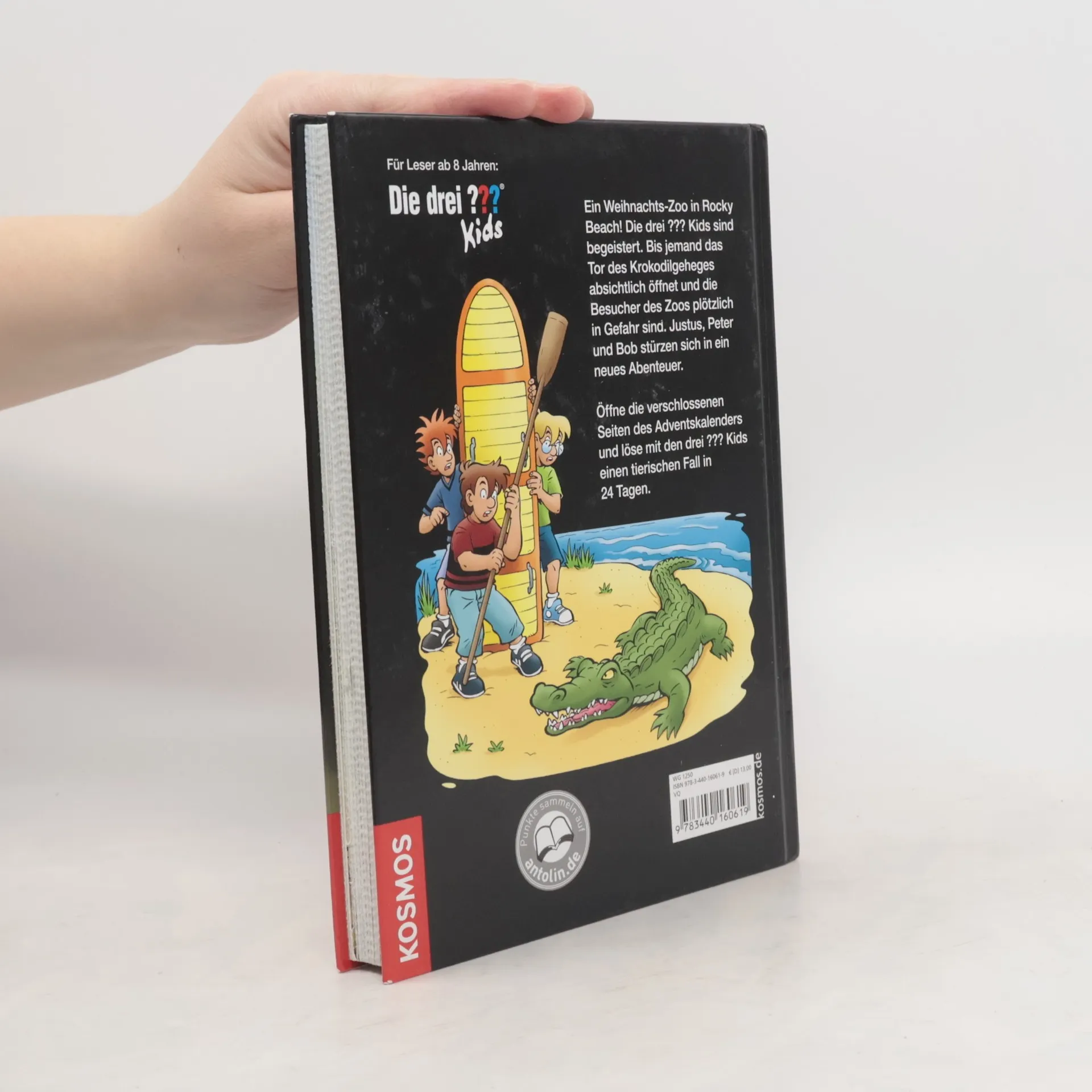 Ein ganz besonderer Adventskalender: Tag für Tag die verschlossenen Seiten öffnen und Justus, Peter und Bob durch ein Weihnachtsabenteuer begleiten. Neben den 24 verschlossenen Kapiteln, kniffligen Rätseln und Bastelspaß ist ein „Die drei ??? Kids“-Stickerbogen enthalten. Der alte Zoo von Rocky Beach soll wieder attraktiv werden: Mit einem modernen Konzept und täglich wechselnden Attraktionen in der Adventszeit. Doch plötzlich geht einiges schief. Tiere brechen aus oder verschwinden, Besucher werden erschreckt und bestohlen. Können die drei ??? Kids die Saboteure entlarven?
