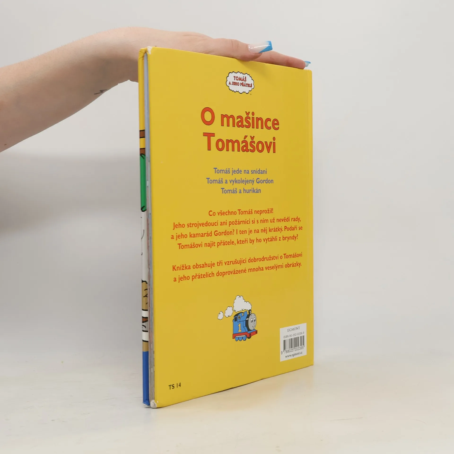 Tomáš je nezbedná mašinka, která ráda pozlobí svého strojvůdce. Má ale také dobré srdce a vždycky ochotně pomůže, když je to zapotřebí. V knížce najdete tři vzrušující dobrodružství o Tomášovi a jeho přátelích doprovázené mnoha veselými obrázky: Tomáš jede na snídani; Tomáš a vykolejený Gordon; Tomáš a hurikán.