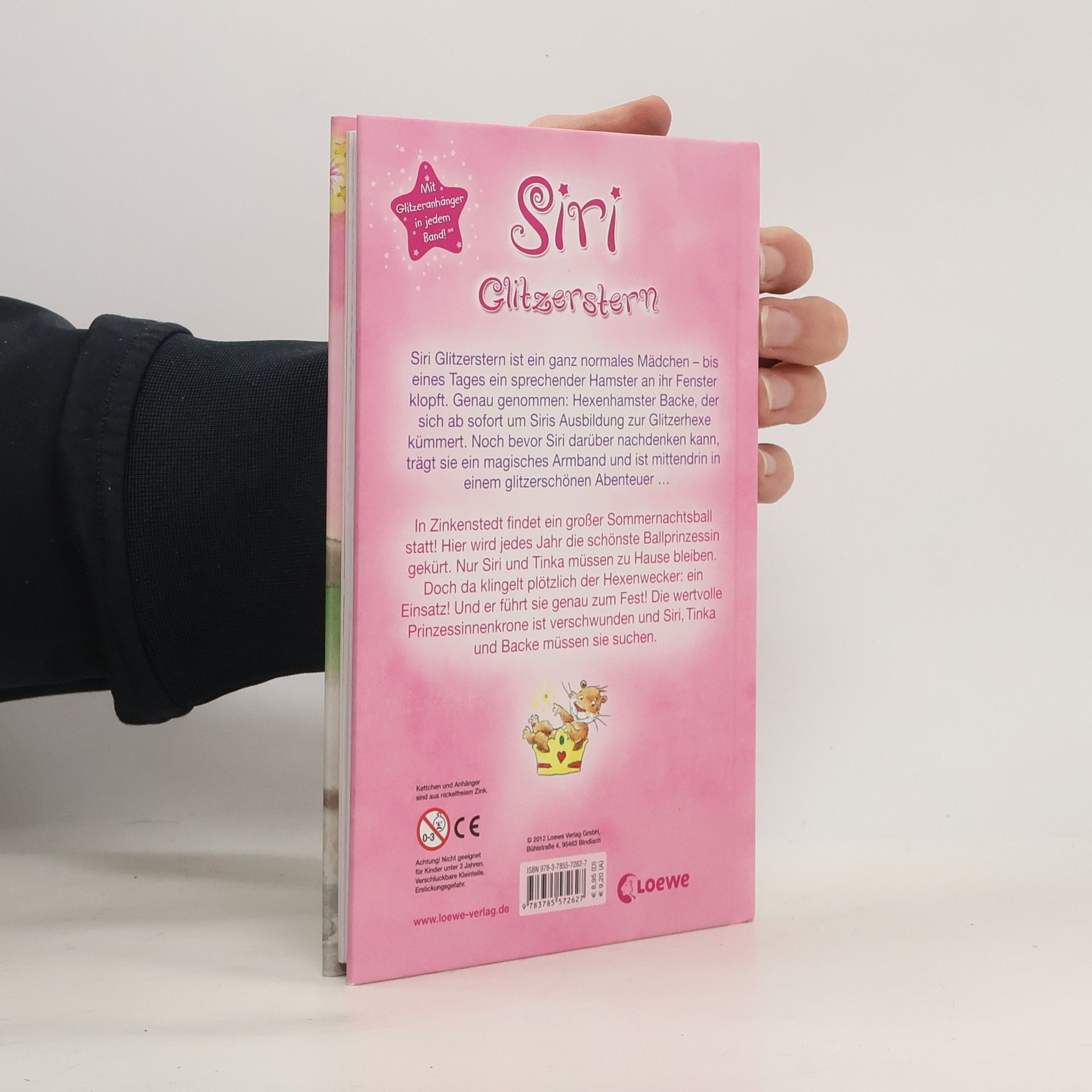 Siri Glitzerstern ist ein ganz normales Mädchen – bis eines Tages ein sprechender Hamster an ihr Fenster klopft. Genau genommen: Hexenhamster Backe, der sich ab sofort um Siris Ausbildung zur Glitzerhexe kümmert. Noch bevor Siri darüber nachdenken kann, trägt sie ein magisches Armband und ist mittendrin in einem glitzerschönen Abenteuer … In Zinkenstedt findet ein großer Prinzessinnenball statt! Hier wird jedes Jahr die schönste Ballprinzessin gekürt. Nur Siri und Tinka müssen zuhause bleiben. Doch da klingelt plötzlich der Hexenwecker: ein Einsatz! Und er führt sie genau zum Fest! Die wertvolle Prinzessinnenkrone ist verschwunden und Siri, Tinka und Backe müssen sie finden. In glitzerschönen Ballkleidern geht die Suche los. Mit Glitzeranhänger in jedem Band!