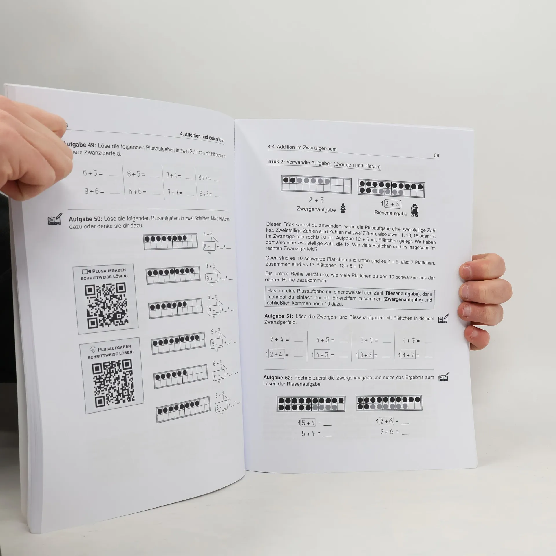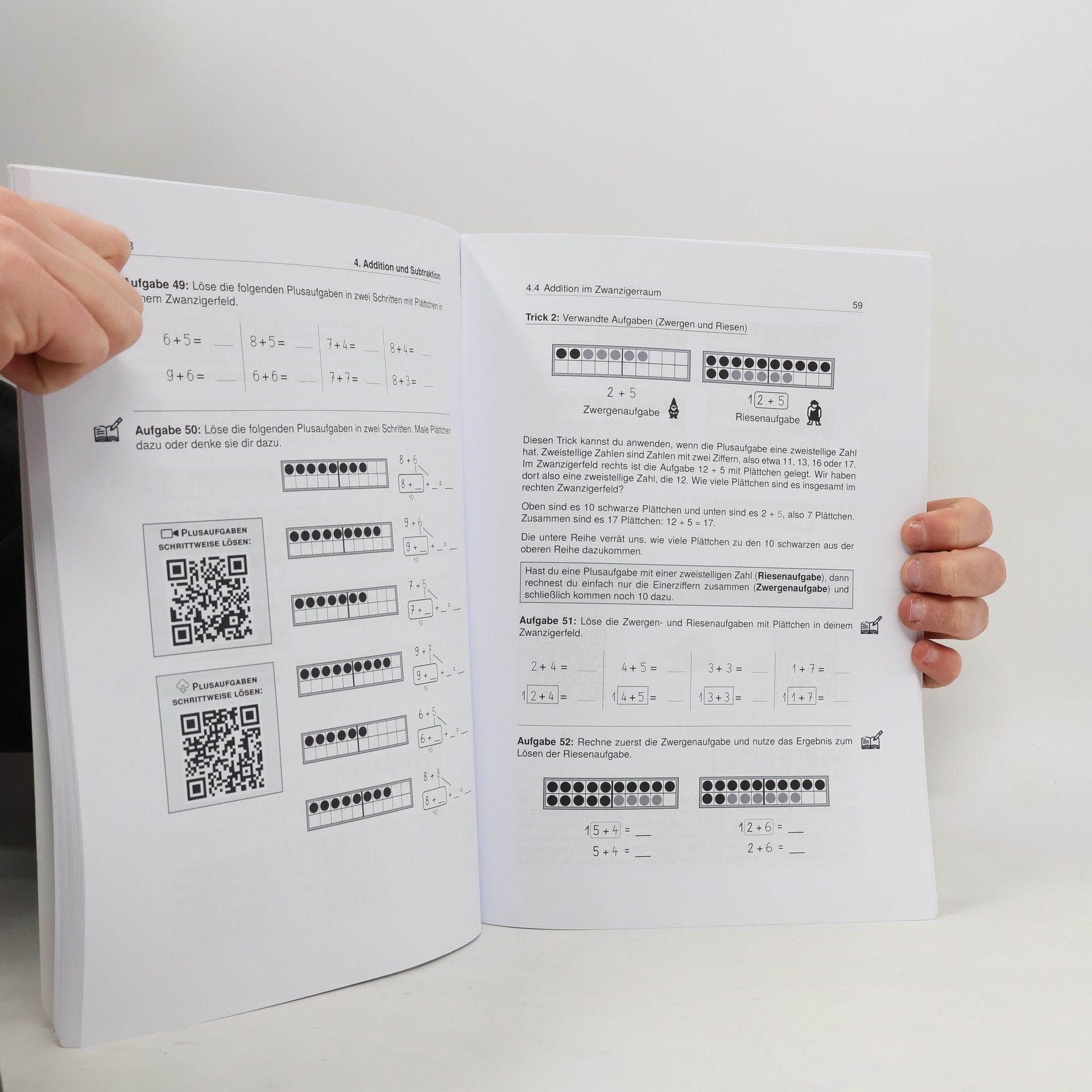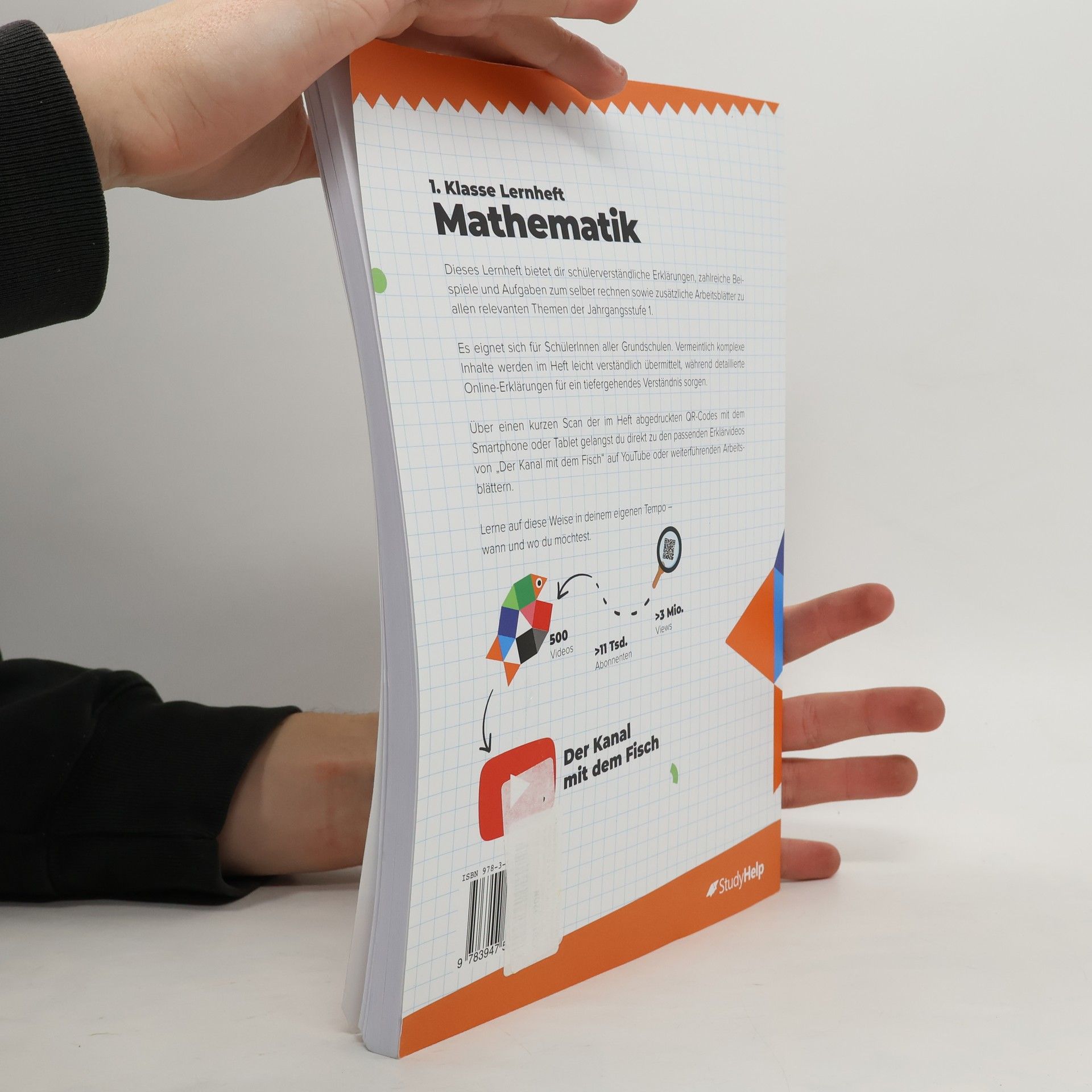 Unser Lernheft unterstützt dich mit Lernvideos von „Der Kanal mit dem Fisch“ und bietet 122 Seiten anschauliche Erklärungen, 39 Lernvideos, 49 Arbeitsblätter zum Download sowie 98 Aufgaben mit Lösungen und interaktive Aufgaben. Es deckt alle relevanten Themen der 1. Klasse für Grundschulen ab. Ob du den aktuellen Stoff vertiefen oder bereits Gelerntes wiederholen möchtest, hier findest du die passenden Inhalte. Komplexe Zusammenhänge werden in verständlicher Sprache erklärt, ergänzt durch Merksätze und Skizzen, die das Verständnis erleichtern. Die Lernvideos und Arbeitsblätter sind didaktisch von Sebastian Kottmann, einem erfahrenen Grundschullehrer, aufbereitet. Die Themen sind in übersichtliche Kapitel gegliedert, die dich sinnvoll durch die 1. Klasse führen. Für Eltern: In der 1. Klasse werden die Grundlagen für das weitere Lernen gelegt. Die Lernanfänger haben unterschiedliche Entwicklungsstände, weshalb eine individuelle Förderung wichtig ist. Gemeinsam mit deinem Kind solltest du herausfinden, welche Übungen am besten geeignet oder herausfordernd sind. Die Themen umfassen Mengen- und Zahlvorstellungen, Zahlen bis 10, Orientierung im Zwanzigerraum, Addition und Subtraktion, Geometrie, Größen sowie Daten und Häufigkeit. Nutze die „Blick ins Buch“-Funktion für einen tieferen Einblick!