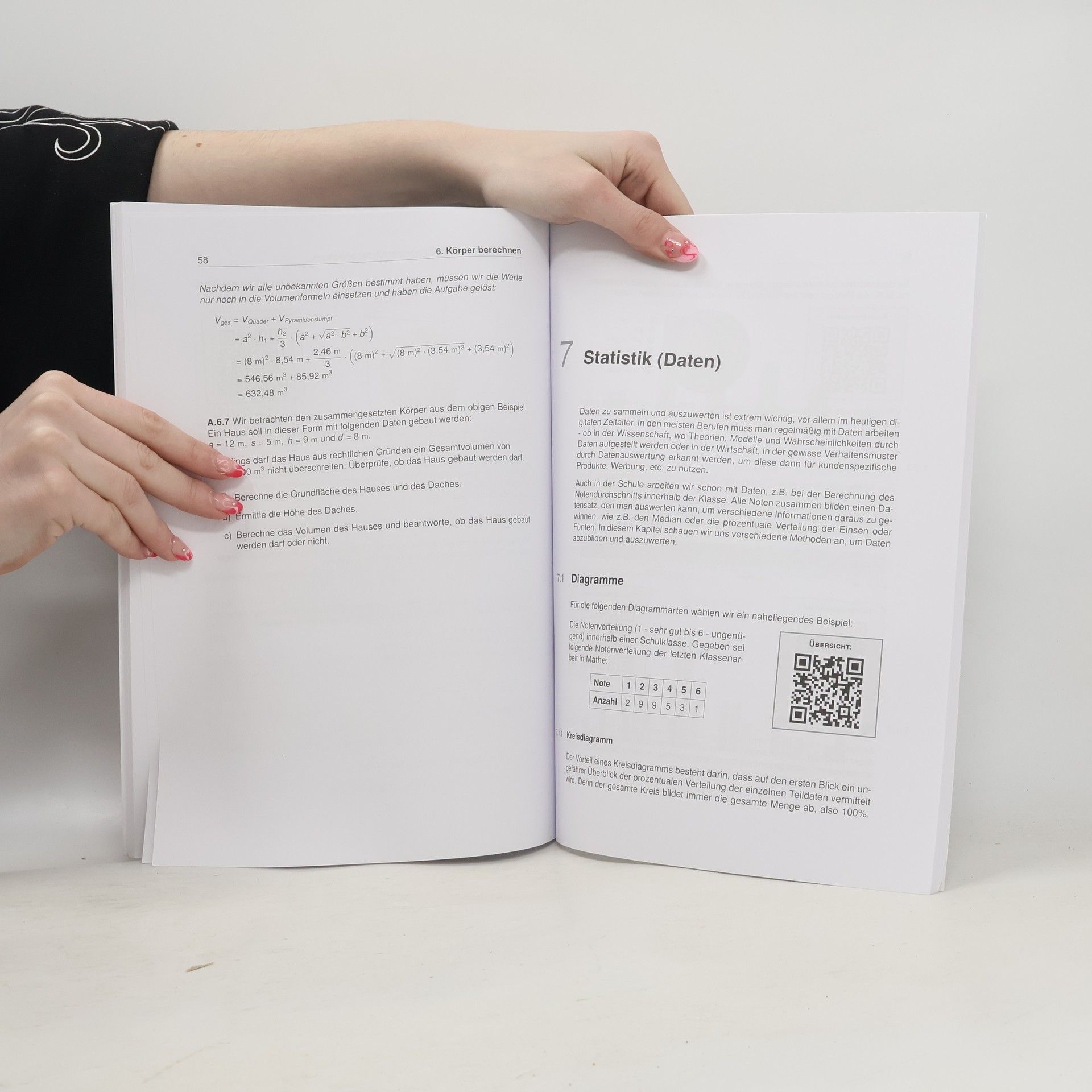 Unser Lernheft ist die ideale Ergänzung zu deinem Schulbuch und hilft dir, mit Lernvideos von Lehrer Schmidt, Wissenslücken zu schließen und nicht den Anschluss zu verlieren. 92 Seiten anschauliche Erklärungen 41 Lernvideos von Lehrer Schmidt 45 Aufgaben inkl. Lösungen In diesem Lernheft für die Sekundarstufe I findest du Erklärungen und Beispielaufgaben zu allen relevanten Themen der 10. Klasse für Gymnasien, Gesamt-, Haupt- und Realschulen . Vermeintlich komplizierte Zusammenhänge sind in einer für dich vollkommen verständlichen Sprache dargestellt. Außerdem findest du zu den Themen alle Formeln, Skizzen und was sonst noch notwendig ist, um den Sachverhalt zu verstehen. Jedes Kapitel verfügt über Aufgaben zum selber rechnen mit ausführlichen Lösungswegen. Als ergänzendes Lernmaterial stehen dir dank der QR-Codes im Heft themenbasierte Erklärvideos von Lehrer Schmidt sofort zur Verfügung. Scanne hierzu mit deinem Smartphone oder Tablet den QR-Code ab und sieh dir ein auf dein Kapitel zugeschnittenes Video an. Auf diese Weise kannst du dich optimal auf mathematische Inhalte vorbereiten und wichtige Themen wiederholen . Inhaltsverzeichnis Quadratische Gleichungen Lineare Gleichungssysteme Potenzen, Wurzeln und Potenzfunktionen Trigonometrische Funktionen Formeln Anwenden Körper berechnen Statistik (Daten) Stochastik (Wahrscheinlichkeiten) Lösungen