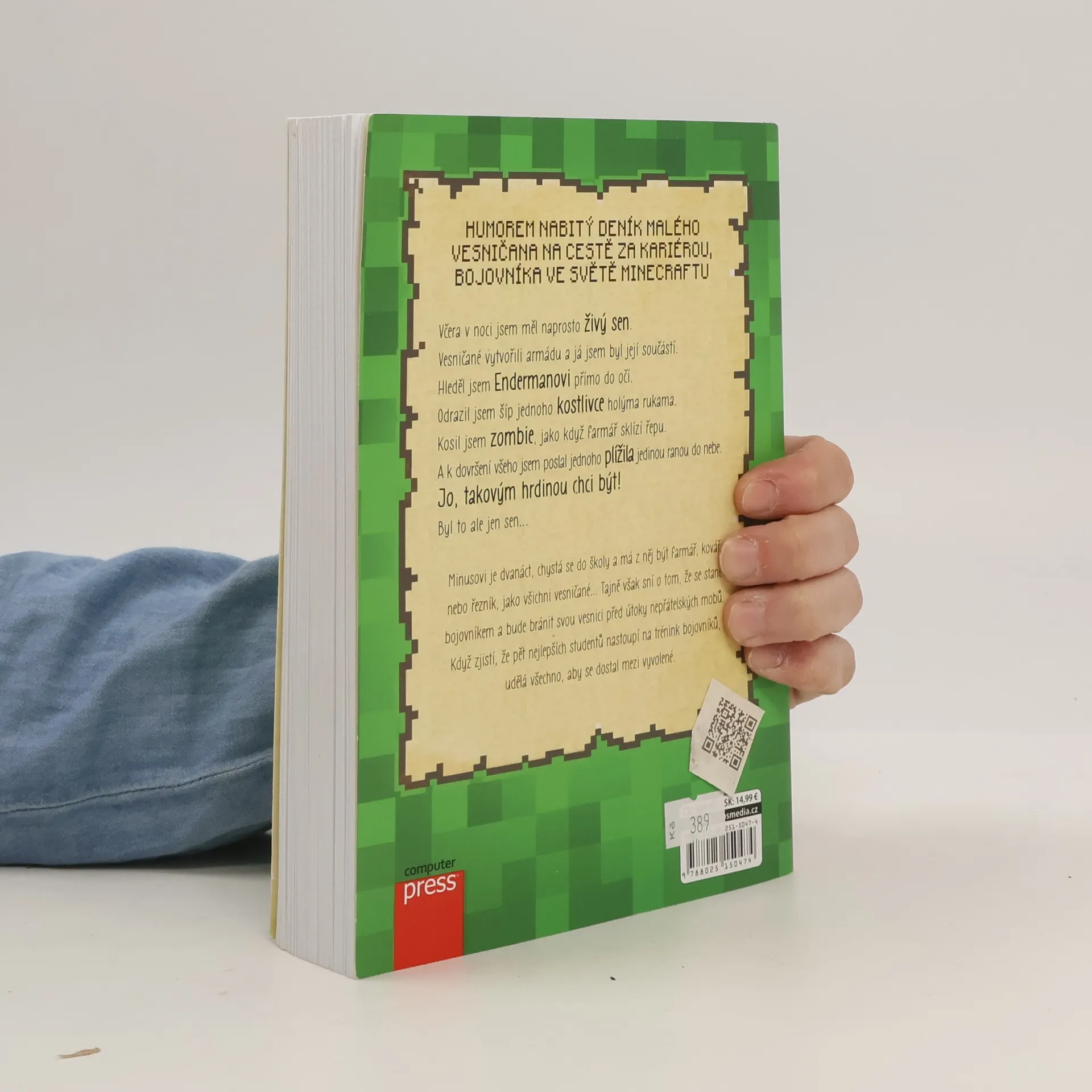 Deník jednoho obyčejného kluka v neobyčejném světě Minecraftu. Jmenuji se Minus. Je mi dvanáct a píšu si deník. Jo a žiju v Minecraftu. Stejně jako všichni ostatní od nás, se mám stát farmářem. Já chci ale něco jiného! Vždycky jsem tajně snil o tom, že se stanu bojovníkem a budu bránit svou vesnici před útoky nepřátelských mobů. A nyní mám příležitost si svůj sen splnit… Zjistil jsem totiž, že pět nejlepších studentů z naší školy nastoupí na trénink bojovníků. Udělám vše pro to, abych se dostal mezi ně!