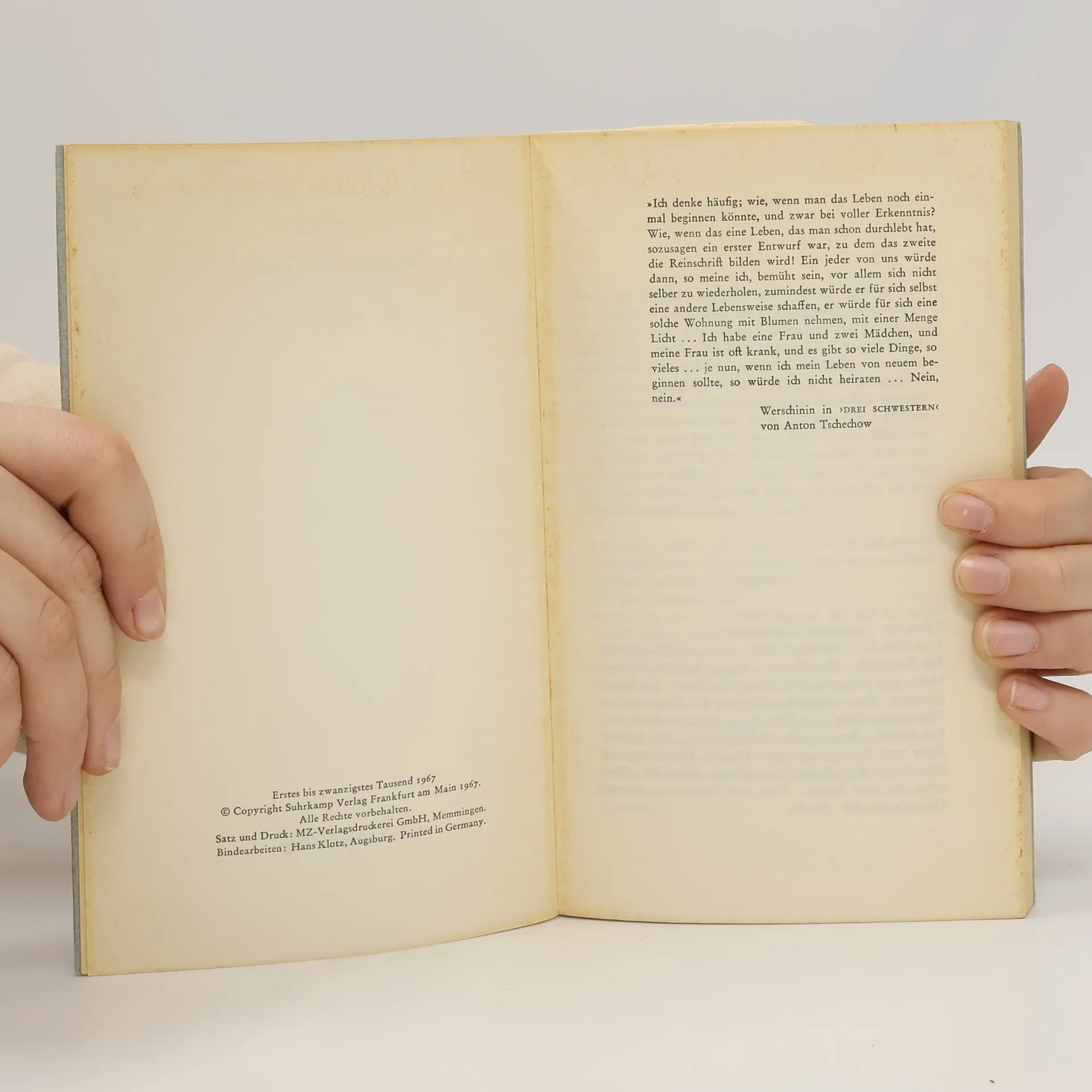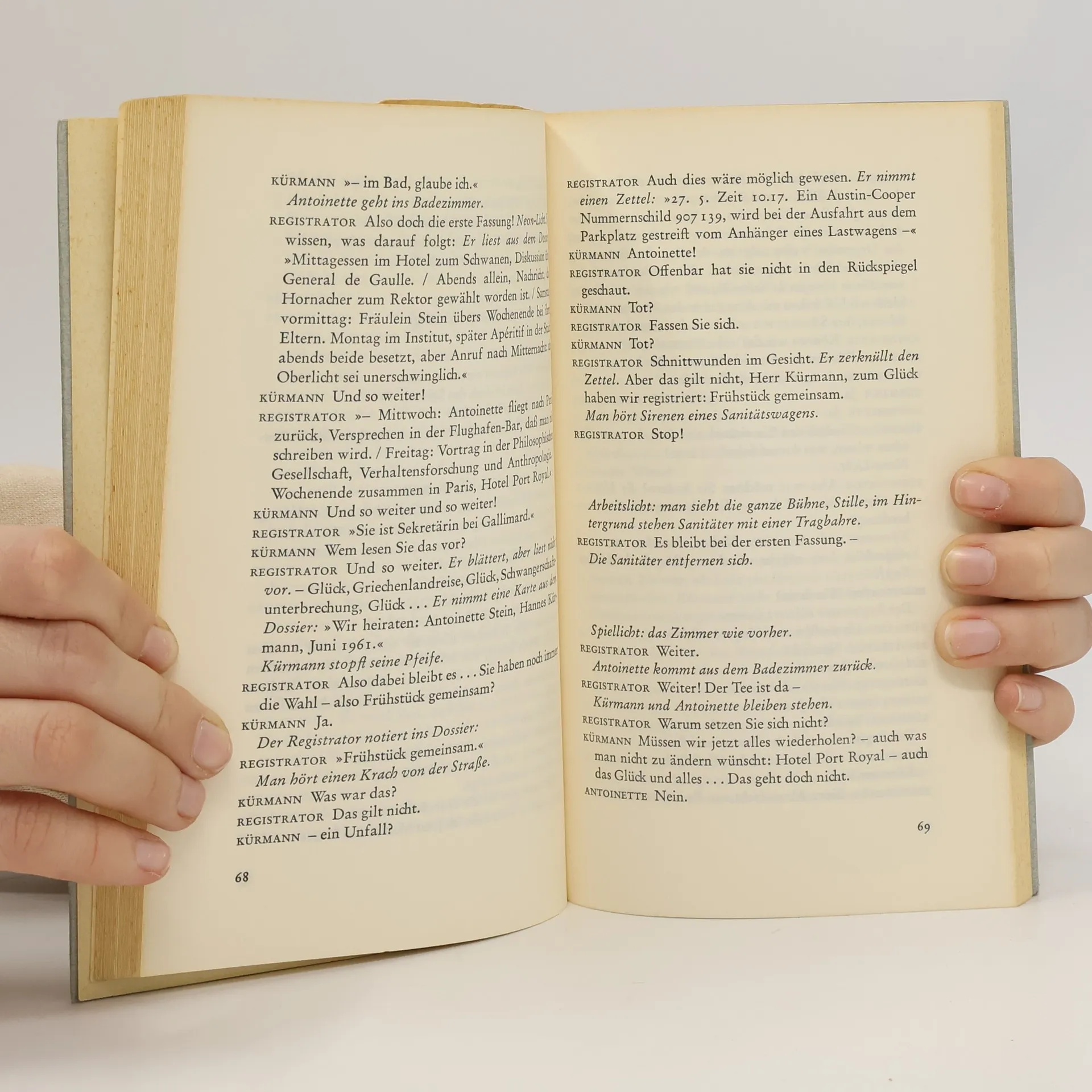 Der Spielcharakter wird augenscheinlicher, das Schauspiel ästhetische Technik und Thema zugleich. Im Zentrum des Spiels steht Hannes Kürmann, Verhaltensforscher, dessen Wunsch »Wenn ich noch einmal anfangen könnte, ich wüßte, was ich anders machen würde« mit Hilfe eines Spielleiters in Erfüllung geht. Biografie - gelebtes Leben, angesammeltes Leben - wird hier dem Versuch ausgesetzt: was wäre, wenn -und vor allem, was wäre, wenn nicht . . .