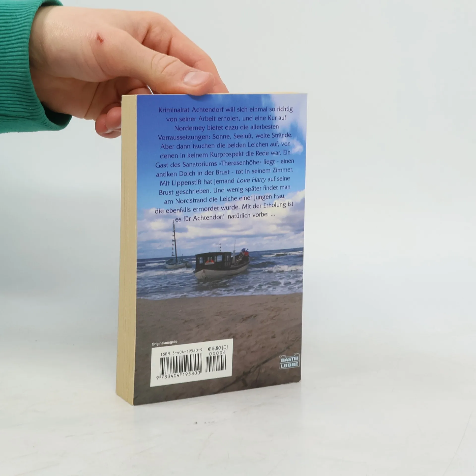 Theodor J. Reisdorf, der Meister des Friesenkrimis, wie immer nordisch, spannend, originell. Kriminalrat Achtendorf will sich einmal so richtig von seiner Arbeit erholen, und eine Kur auf Norderney bietet dazu die allerbesten Voraussetzungen: Sonne, Seeluft, weite Strände. Aber dann tauchen die beiden Leichen auf, von denen in keinem Kurprospekt die Rede war. Ein Gast des Sanatoriums Theresenhöhe liegt - einen antiken Dolch in der Brust - tot in seinem Zimmer. Mit Lippenstift hat jemand "Love Harry" auf seine Brust geschrieben. Und wenig später findet man am Nordstrand die Leiche einer jungen Frau, die ebenfalls ermordet wurde. Mit der Erholung ist es für Achtendorf natürlich vorbei...