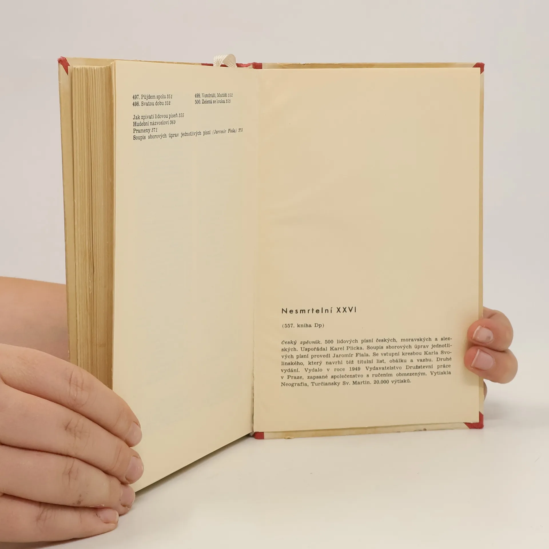 Zpěvník obsahuje 500 lidových písní, českých, moravských a slezských.. Každá s notací a texty, návody ku zpěvu, hudební názvosloví, soupis sborových úprav,