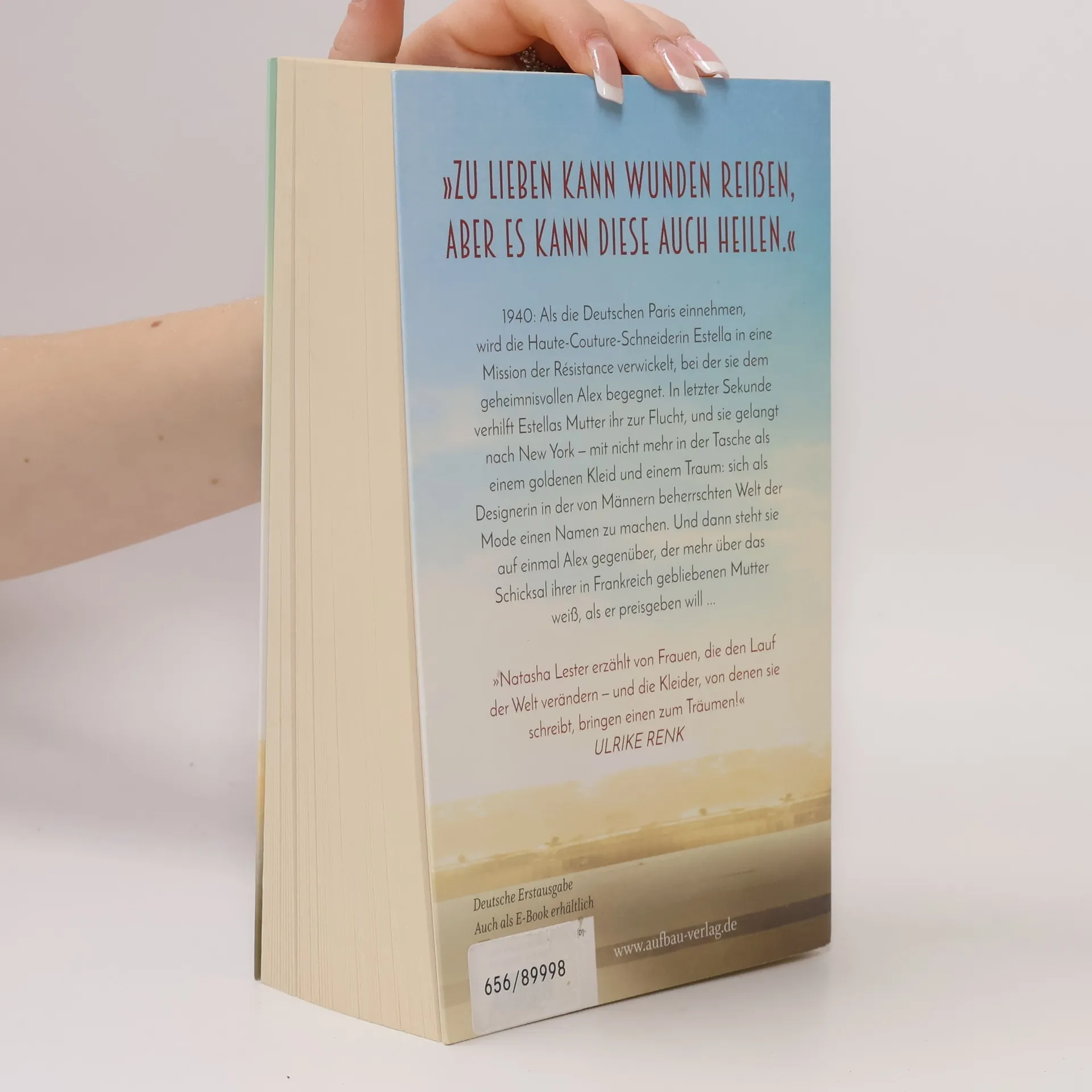 „Zu lieben kann Wunden reißen, aber es kann diese auch heilen.“. 1940: Als die Deutschen Paris einnehmen, wird die Haute-Couture-Schneiderin Estella in eine Mission der Résistance verwickelt, bei der sie dem geheimnisvollen Alex begegnet. In letzter Sekunde verhilft Estellas Mutter ihr zur Flucht, und sie gelangt nach New York – mit nicht mehr in der Tasche als einem goldenen Kleid und einem Traum: sich als Designerin in der von Männern beherrschten Welt der Mode einen Namen zu machen. Und dann steht sie auf einmal Alex gegenüber, der mehr über das Schicksal ihrer in Frankreich gebliebenen Mutter weiß, als er preisgeben will ... „Natasha Lester erzählt von Frauen, die den Lauf der Welt verändern – und die Kleider, von denen sie schreibt, bringen einen zum Träumen!“ Ulrike Renk