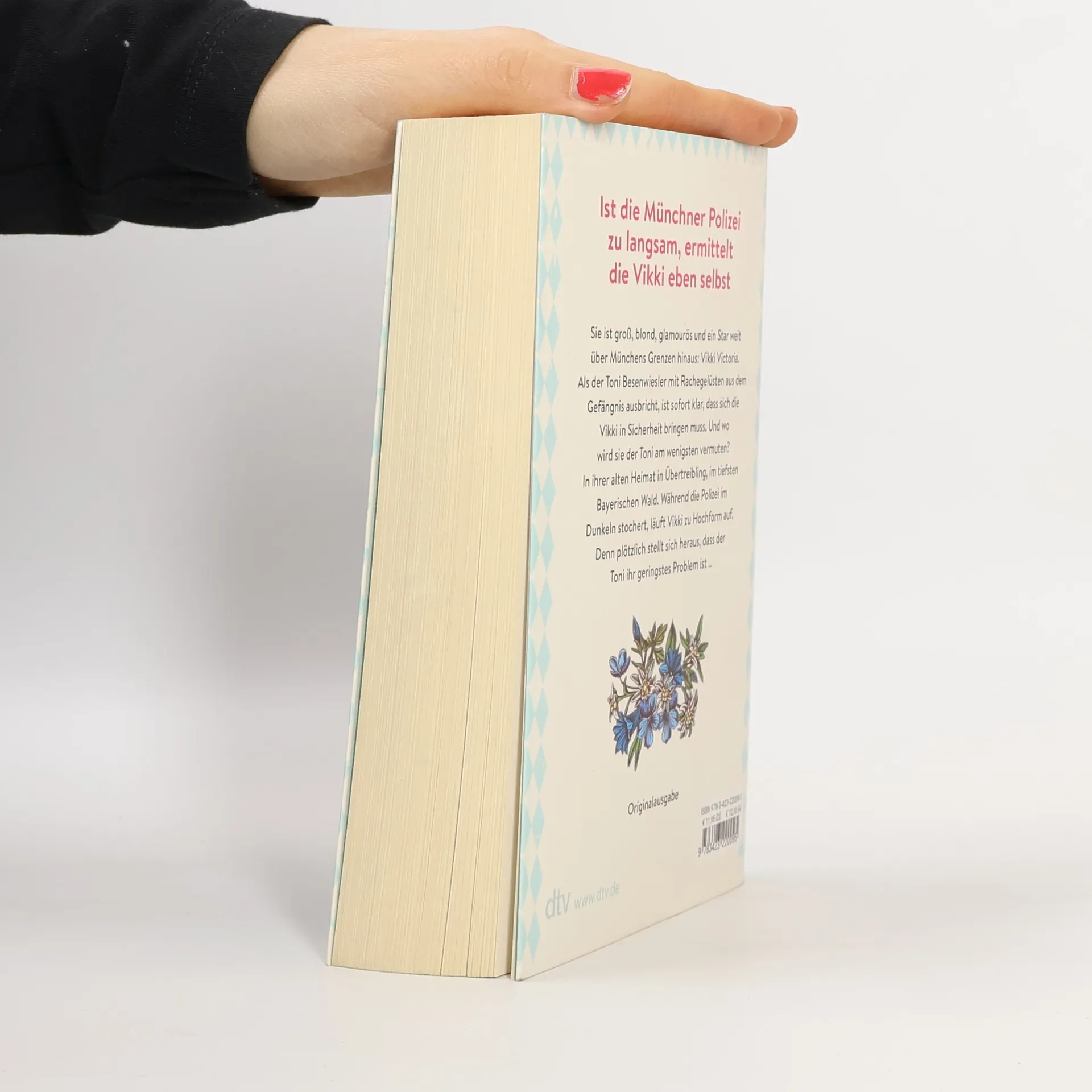 Ist die Münchner Polizei zu langsam, ermittelt die Vikki eben selbst Als eines Morgens zu unchristlicher Zeit (vor 12!) ein Anruf vom Wolf kommt, dass der Toni aus dem Gefängnis ausgebrochen ist, weiß die Vikki, dass sie sich au-gen-blick-lich in Sicherheit bringen muss. Schließlich hat ihr der Toni in den letzten 13 Jahren die schlimmsten Drohungen geschickt. Und wo wird man die Vikki, 41 Jahre, ums Eck vom Münchner Viktualienmarkt lebend und tatkräftige Künstlerin, niemals vermuten? Zu Hause in Übertreibling. Wieso allerdings der Toni denkt, dass die Vikki ihn seinerzeit für den Mord an seiner Frau bei der Polizei angeschwärzt hat, war ihr bislang ein Rätsel. Das sie genau jetzt lösen wird. Mit Wolf im Schlepptau geht es in die Provinz. Nicht ahnend, wie dicht ihr die Gefahr auf den Fersen ist.