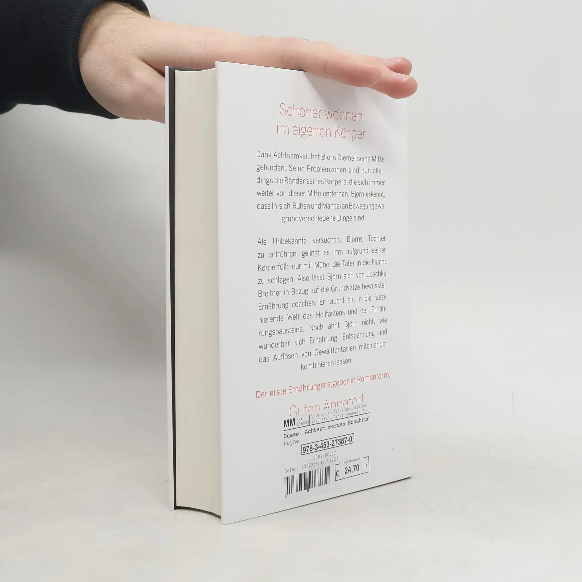 Guten Appetot! Dank Achtsamkeit hat Björn Diemel seine Mitte gefunden. Seine Problemzonen sind nun allerdings die Ränder seines Körpers, die sich immer weiter von dieser Mitte entfernen. Björn erkennt, dass In-sich-Ruhen und Mangel an Bewegung zwei grundverschiedene Dinge sind. Als Unbekannte versuchen, Björns Tochter zu entführen, gelingt es ihm aufgrund seiner Körperfülle nur mit Mühe, die Täter in die Flucht zu schlagen. Also lässt Björn sich von Joschka Breitner in Bezug auf die Grundsätze bewusster Ernährung coachen. Er taucht ein in die faszinierende Welt des Heilfastens und der Ernährungsbausteine. Noch ahnt Björn nicht, wie wunderbar sich Ernährung, Entspannung und das Auflösen von Gewaltfantasien miteinander kombinieren lassen.