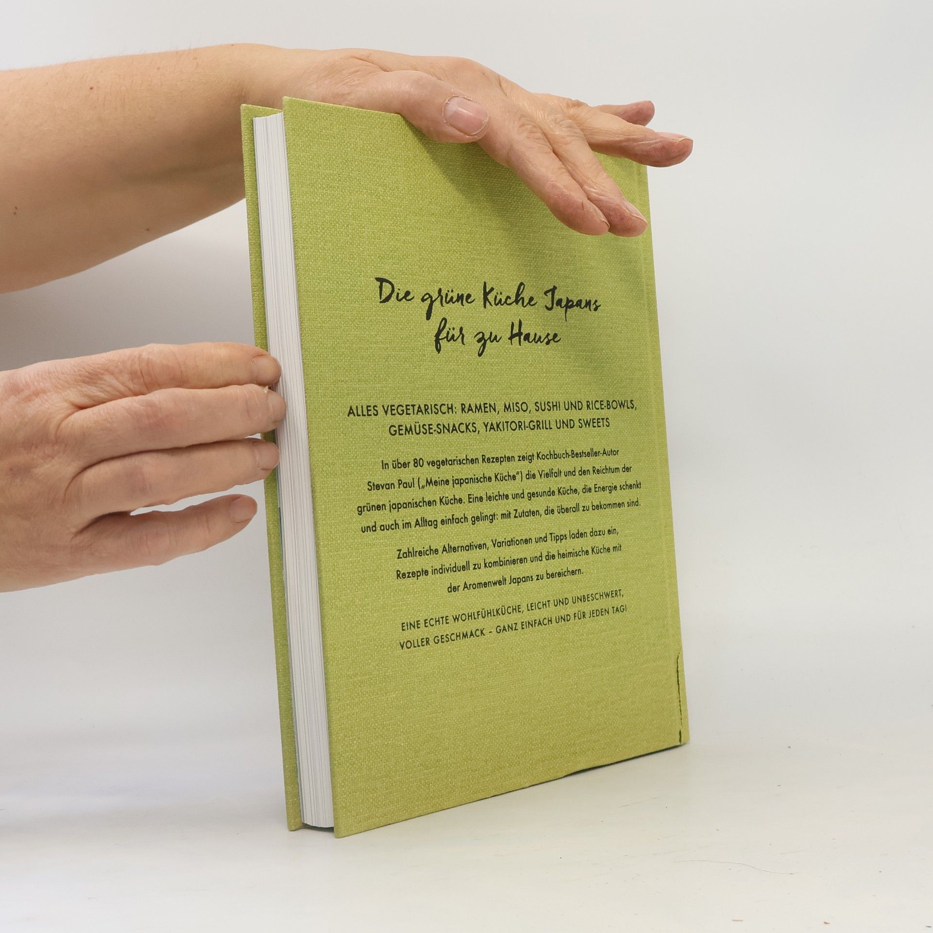Alles vegetarisch: Ramen, Miso, Sushi und Rice-Bowls, Gemüse-Snacks, Yakitori-Grill und Süßes. In über 80 vegetarischen Rezepten zeigt Kochbuch-Bestseller-Autor Stevan Paul („Meine japanische Küche") die Vielfalt und den Reichtum der grünen japanischen Küche. Eine leichte und gesunde Küche, die Energie schenkt und auch im Alltag einfach gelingt: mit Zutaten, die überall zu bekommen sind. Zahlreiche Alternativen und Variationen laden dazu ein, Rezepte auch individuell zu kombinieren. Erstmals wird zudem erklärt, wie die klare Aromenwelt Japans auch unsere heimische Küche bereichern kann. Eine echte Wohlfühlküche, leicht und unbeschwert, voller Geschmack – ganz einfach und für jeden Tag!