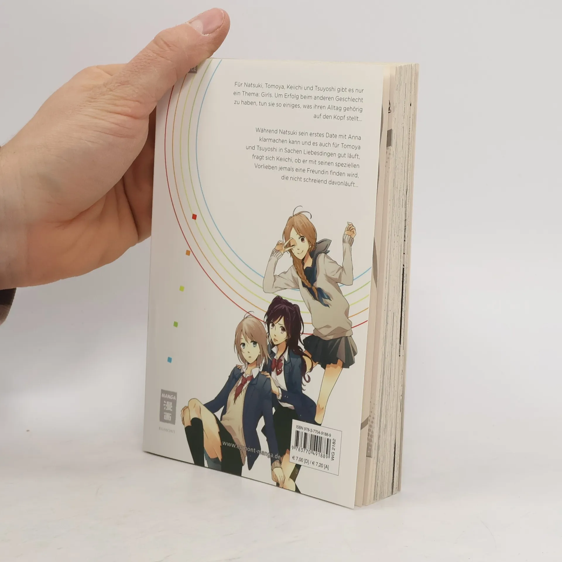 Für Natsuki, Tomoya, Keiichi und Tsuyoshi gibt es nur ein Thema: Girls. Um Erfolg beim anderen Geschlecht zu haben, tun sie so einiges, was ihren Alltag gehörig auf den Kopf stellt… Während Natsuki sein erstes Date mit Anna klarmachen kann und es auch für Tomoya und Tsuyoshi in Sachen Liebesdingen gut läuft, fragt sich Keiichi, ob er mit seinen speziellen Vorlieben jemals eine Freundin finden wird, die nicht schreiend davonläuft… Band 1 und 2 enthalten jeweils ein besonderes Extra. Während dem 1. Band ein süsser Stickerbogen beiliegt, kommt Band 2 mit einem praktischen Terminplaner daher.