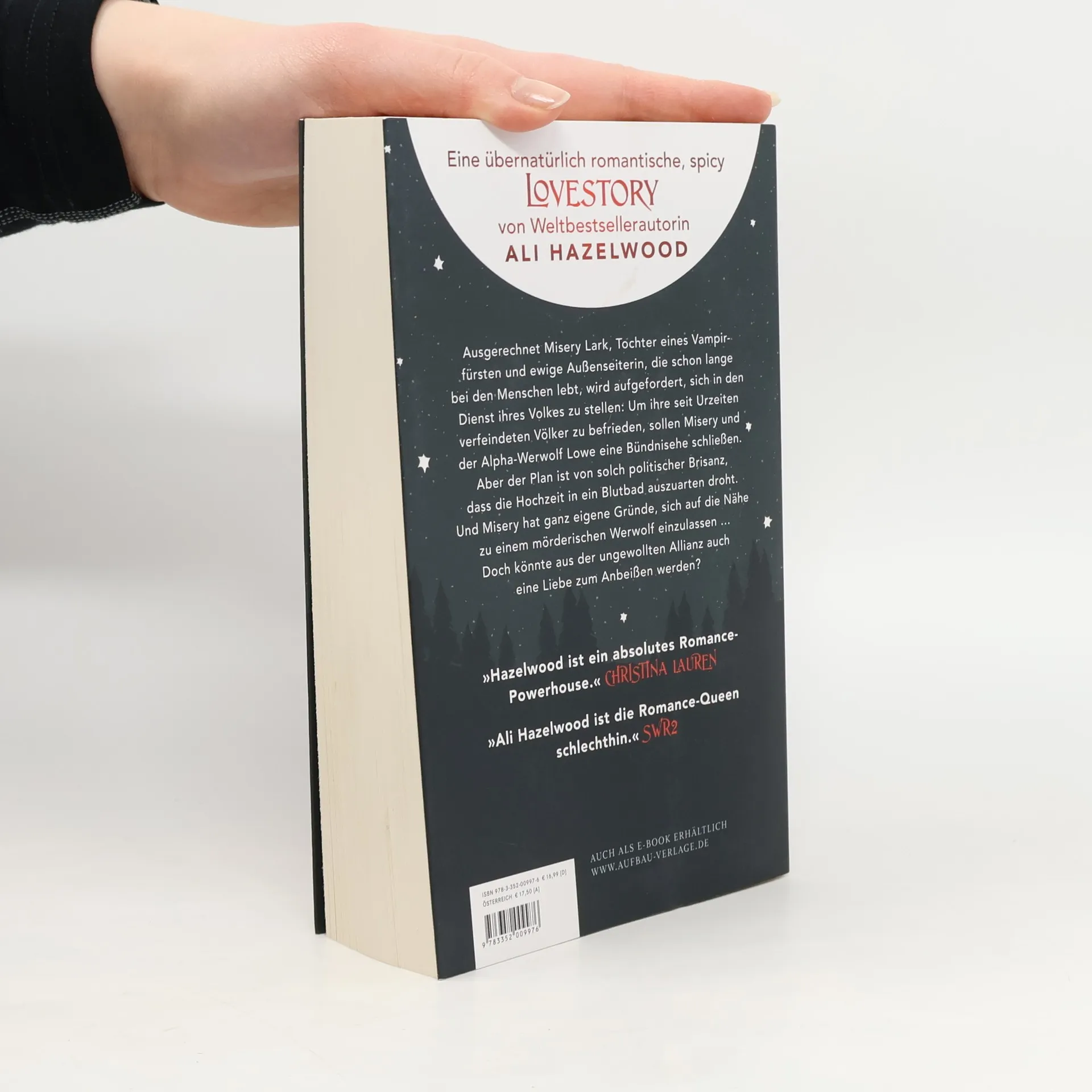 Mit wunderschönem farbigem Buchschnitt – limitiert auf die erste Auflage. Misery Lark, Tochter eines mächtigen Vampirfürsten, ist eine Außenseiterin, die unter den Menschen ein anonymes Dasein führt. Plötzlich soll sie sich jedoch einer brisanten Bündnisehe mit einem Werwolf, dem ewigen Feind der Vampire, hingeben. Ihr zukünftiger Ehemann, der Alpha Lowe Moreland, ist ebenso erbarmungslos wie unberechenbar, regiert jedoch mit Autorität und einem Sinn für Gerechtigkeit, was ihn von den Vampiren unterscheidet. Misery spürt, dass er ihr nicht traut – und das aus gutem Grund, denn sie hat eigene Motive für das Bündnis und ist bereit, alles zu opfern, selbst ein Leben unter Wölfen. Doch sie hat nicht mit der überwältigenden Kraft der Liebe gerechnet, die alle Unterschiede überwindet. Der neue Bestseller von Ali Hazelwood erzählt von einer Liebe zwischen zwei Welten: Forbidden Love, Fated Mates, Enemies to Lovers und mehr in einer übernatürlich romantischen, prickelnd heißen Lovestory aus einem neuen Teil des Aliversums. »Hazelwood ist ein absolutes Romance-Powerhouse.« – Christina Lauren. »Leidenschaftlich und witzig – Ali Hazelwoods Debüt im Paranormalen führt uns in eine faszinierende Welt.« – Nalini Singh, New-York-Times-Bestsellerautorin.