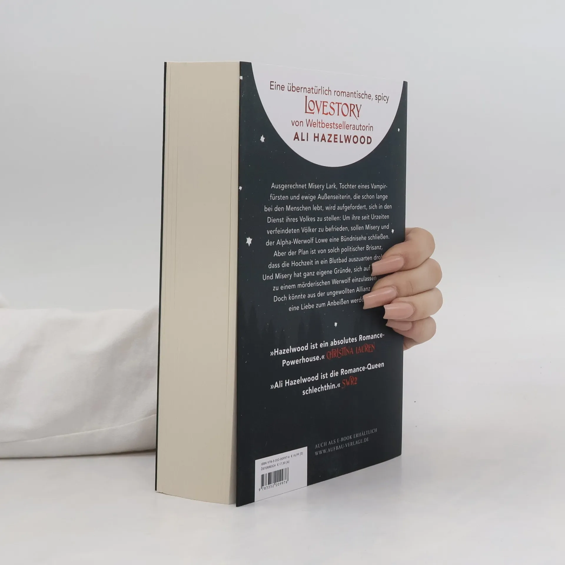 Mit wunderschönem farbigem Buchschnitt – limitiert auf die erste Auflage. Misery Lark, Tochter eines mächtigen Vampirfürsten, ist eine Außenseiterin, die unter den Menschen ein anonymes Dasein führt. Plötzlich soll sie sich jedoch einer brisanten Bündnisehe mit einem Werwolf, dem ewigen Feind der Vampire, hingeben. Ihr zukünftiger Ehemann, der Alpha Lowe Moreland, ist ebenso erbarmungslos wie unberechenbar, regiert jedoch mit Autorität und einem Sinn für Gerechtigkeit, was ihn von den Vampiren unterscheidet. Misery spürt, dass er ihr nicht traut – und das aus gutem Grund, denn sie hat eigene Motive für das Bündnis und ist bereit, alles zu opfern, selbst ein Leben unter Wölfen. Doch sie hat nicht mit der überwältigenden Kraft der Liebe gerechnet, die alle Unterschiede überwindet. Der neue Bestseller von Ali Hazelwood erzählt von einer Liebe zwischen zwei Welten: Forbidden Love, Fated Mates, Enemies to Lovers und mehr in einer übernatürlich romantischen, prickelnd heißen Lovestory aus einem neuen Teil des Aliversums. »Hazelwood ist ein absolutes Romance-Powerhouse.« – Christina Lauren. »Leidenschaftlich und witzig – Ali Hazelwoods Debüt im Paranormalen führt uns in eine faszinierende Welt.« – Nalini Singh, New-York-Times-Bestsellerautorin.